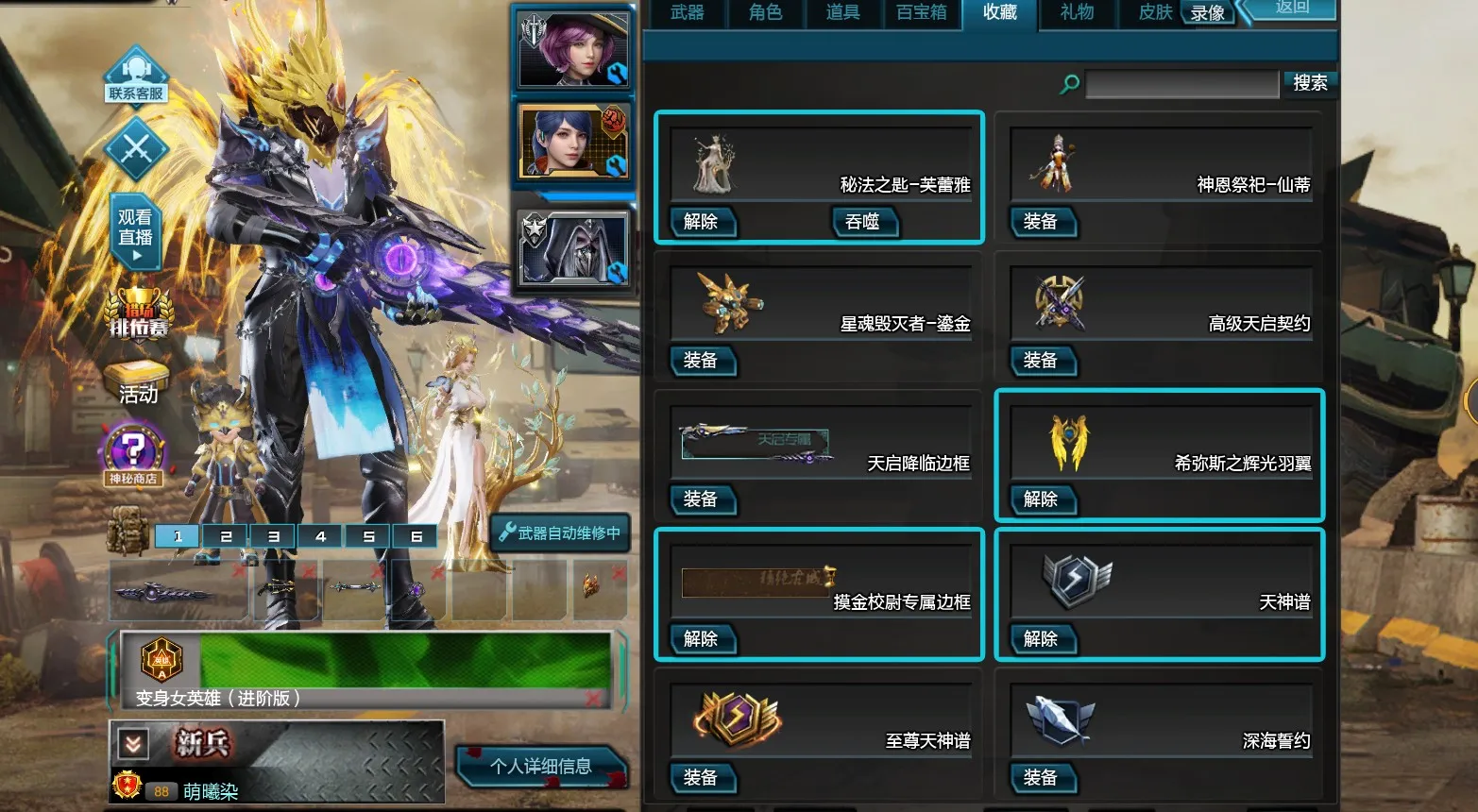 商城全装号、神凰套6核30级全皮、天帝套6核30级全皮、苍蓝苍龙圣翼鎏金战翼女帝25宠12戒6翅