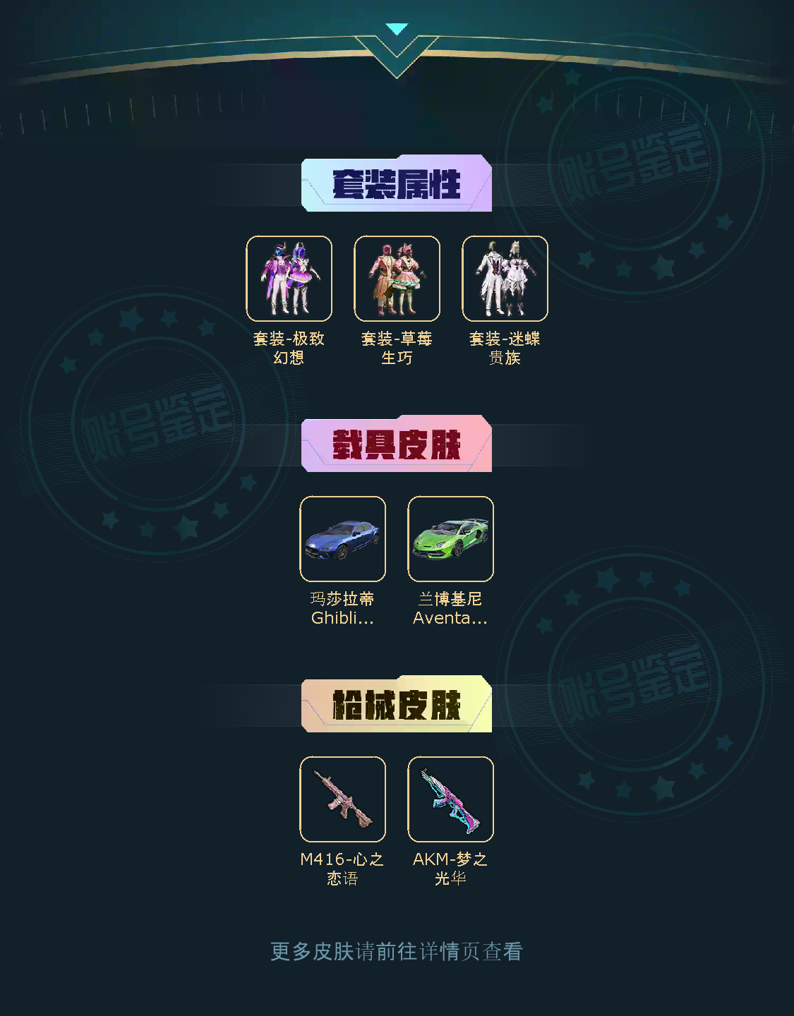 直接上号/2载具绿兰博蓝玛/2特效m4恋语5级/ak光华4级/3粉s1赛事上衣奇异狩猎者金羽全套/13印记战神框