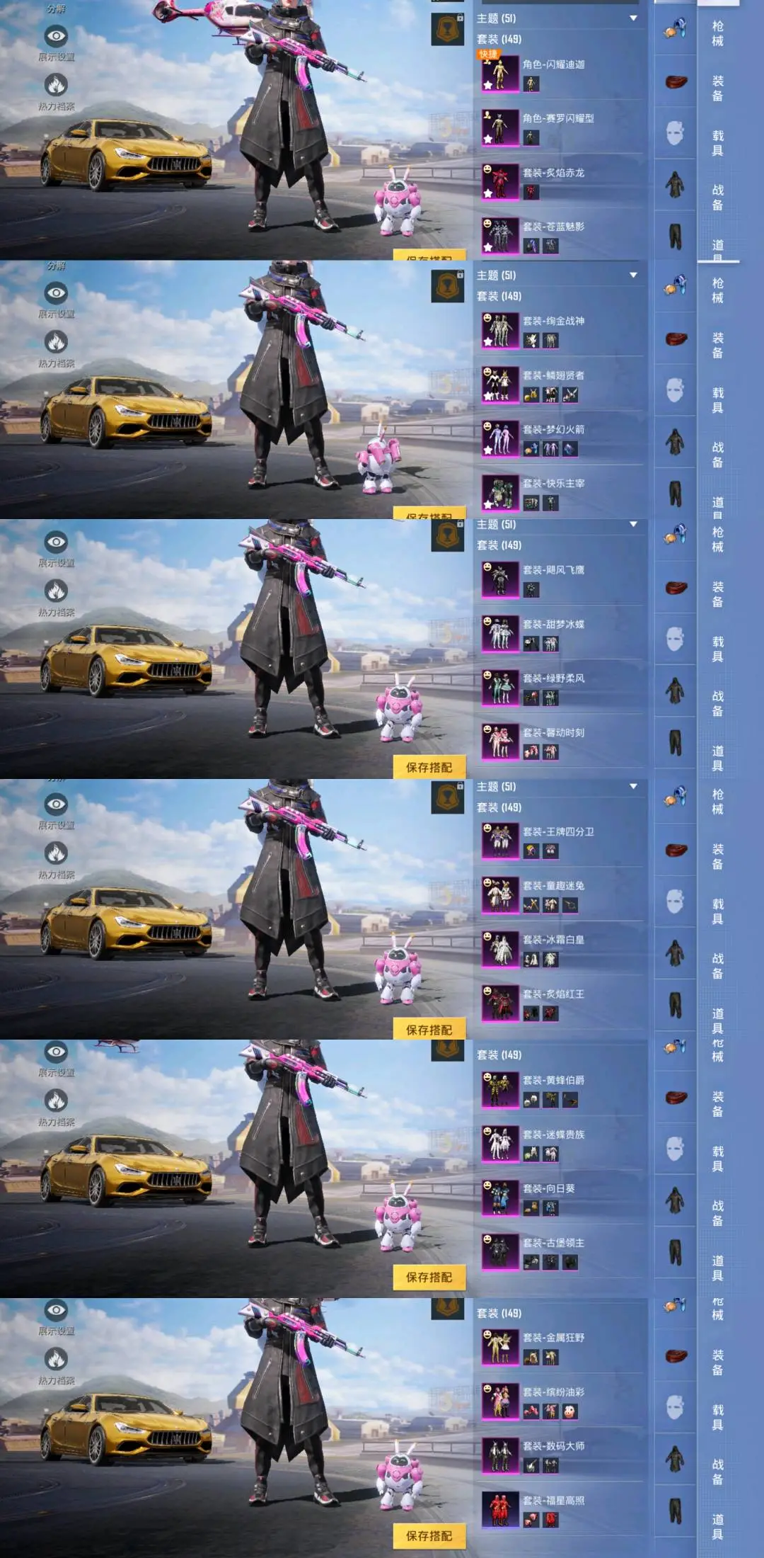 【安卓】 包天特价💥24粉装💥15特效枪💥12载具💥2僚机💥156套装190枪皮💥金玛莎拉蒂