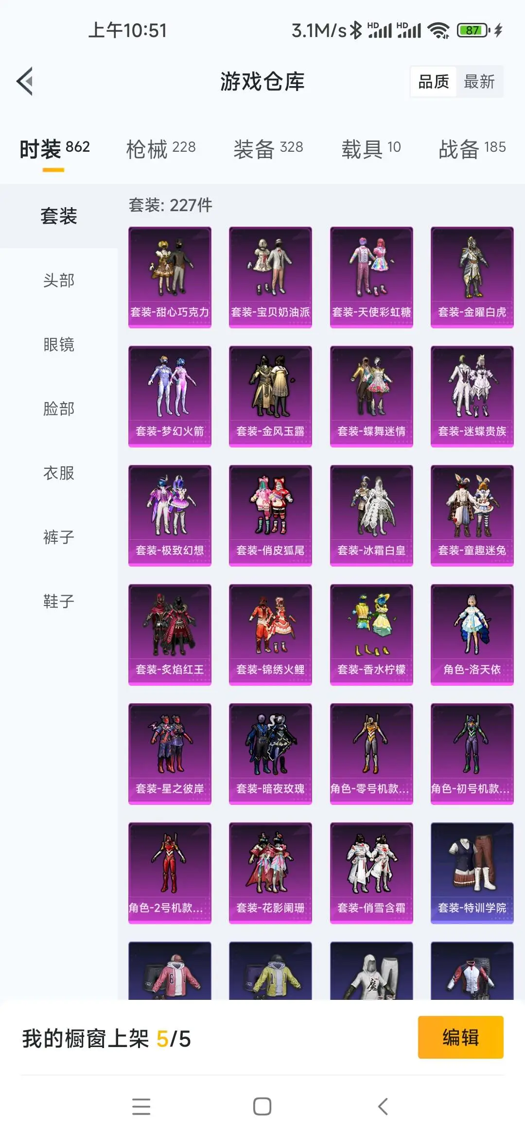 三色螳螂❤️227衣服❤️23粉❤️10车一僚机❤️洛天依❤️奇异狩猎者❤️202枪皮6特效武器
