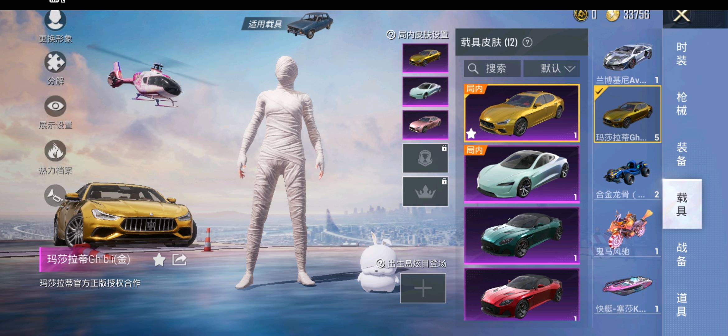 55粉 23特效 12载具 2飞机 3个三币 铂金兰博 金玛莎 粉飞机