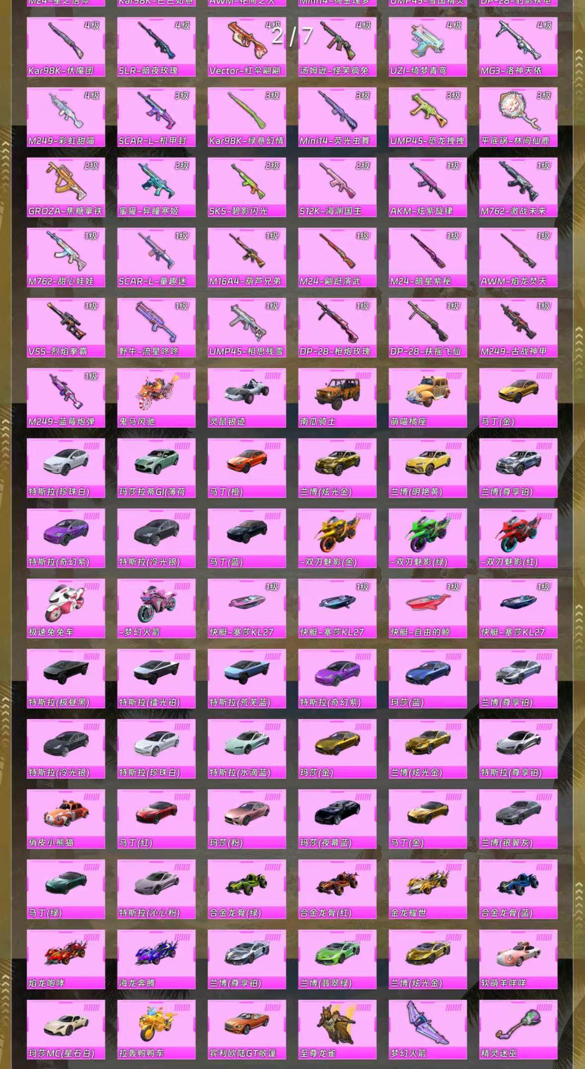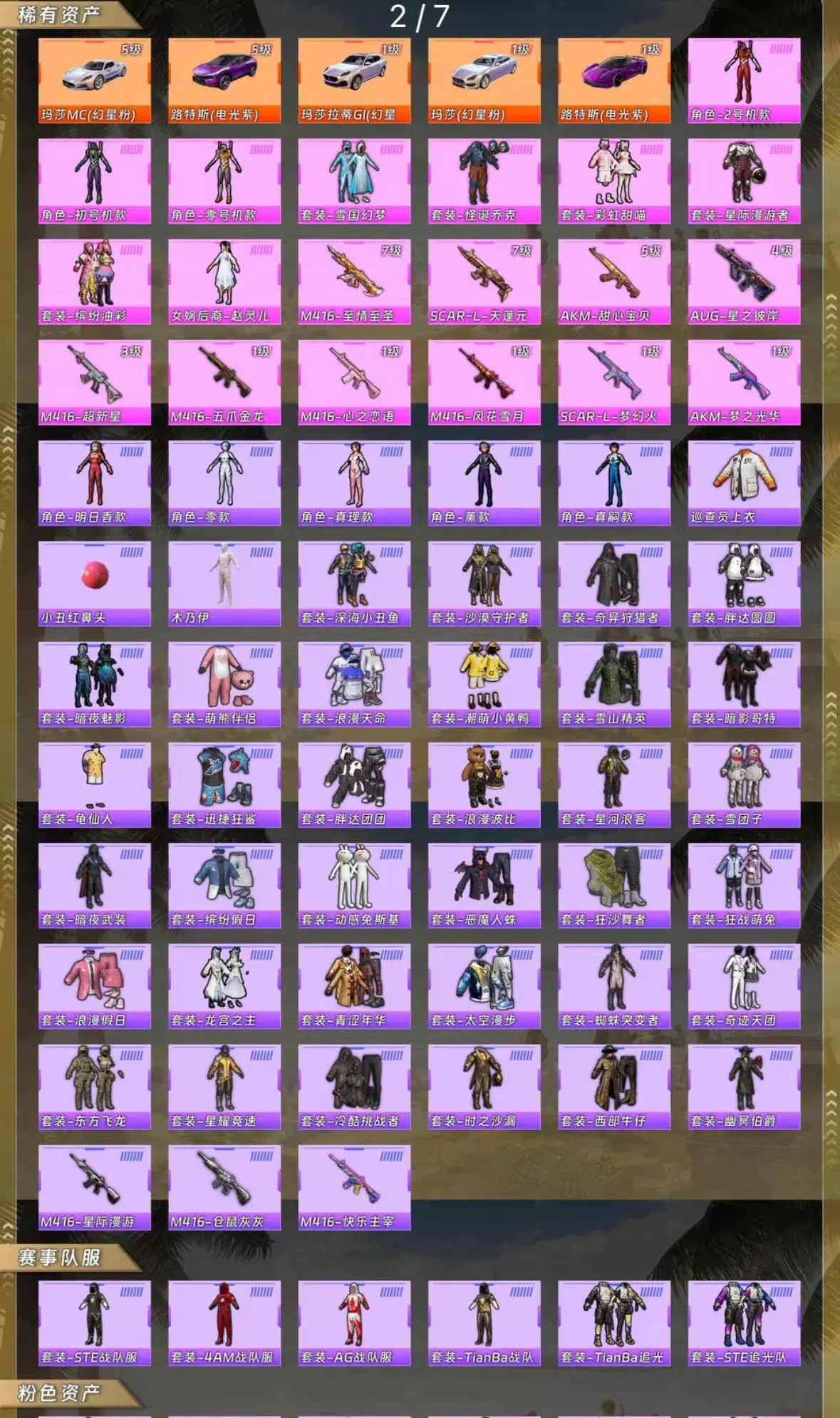 【安卓】 包天更划算 61载具+3飞机 5级幻星粉玛莎 金玛莎 141套粉装 53特效 3色螳螂 木乃伊 小丑