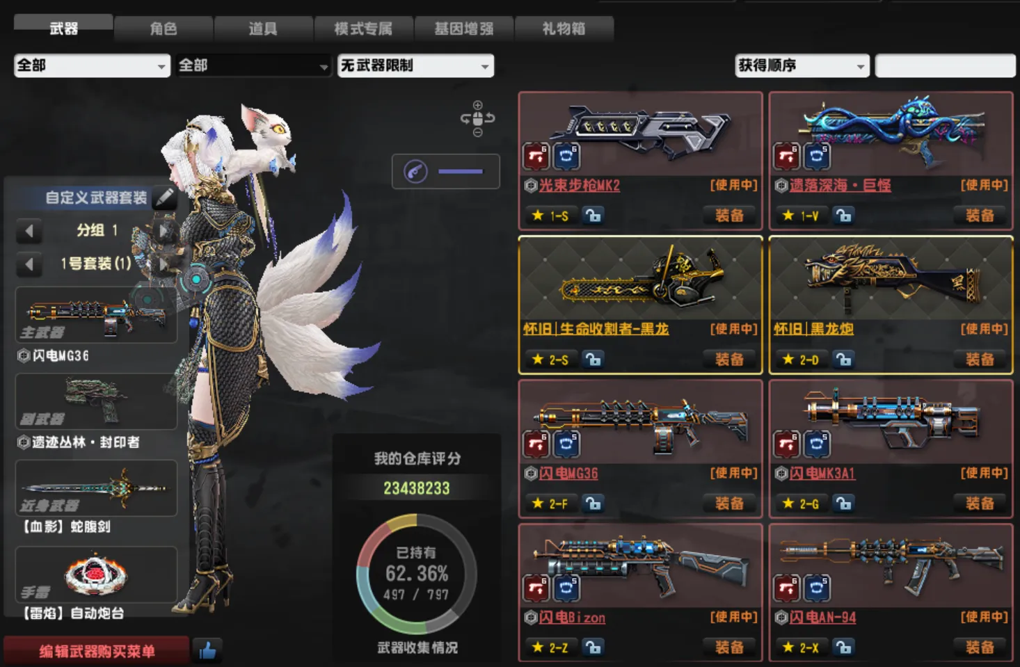【皇家紫钻 最新稀有武器超凡武器 传奇武器都可以使用】●号以去黑雾○有加五臂铠【红心之王6攻6恢复星光狙】【维京光束MK26攻6恢复】