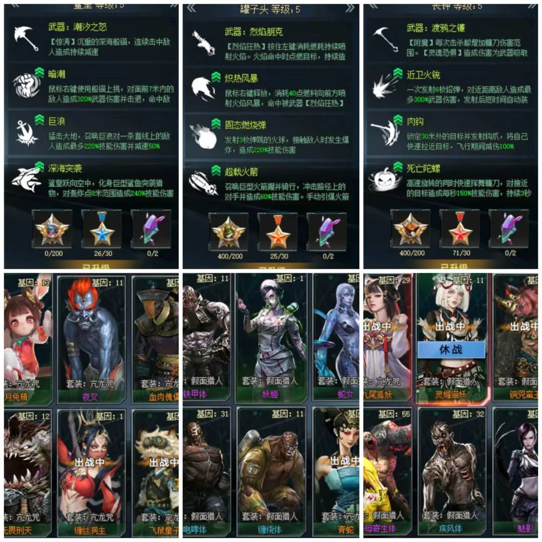 英雄角色:五级丧钟◆五级鲨皇◆五级罐子头