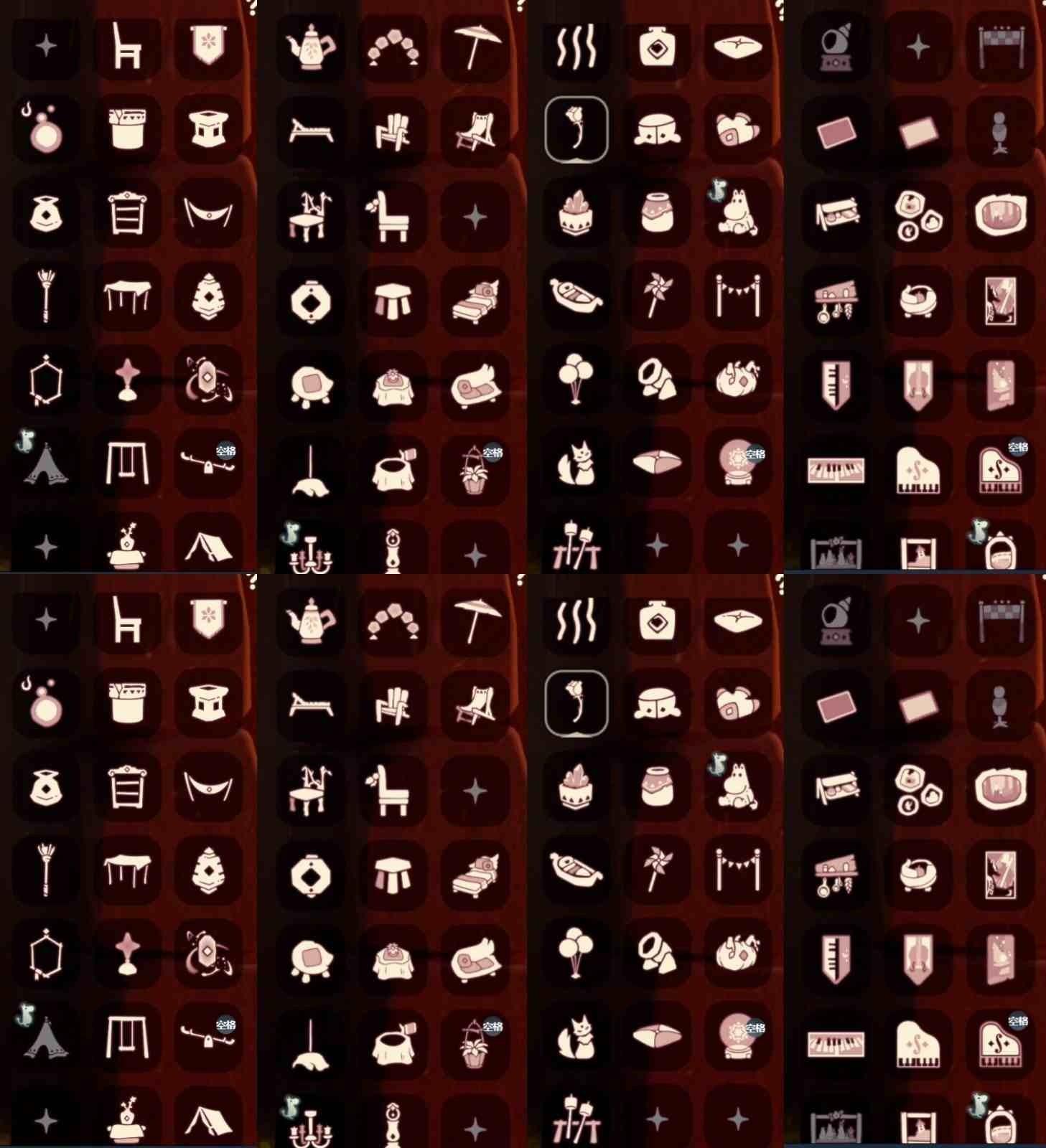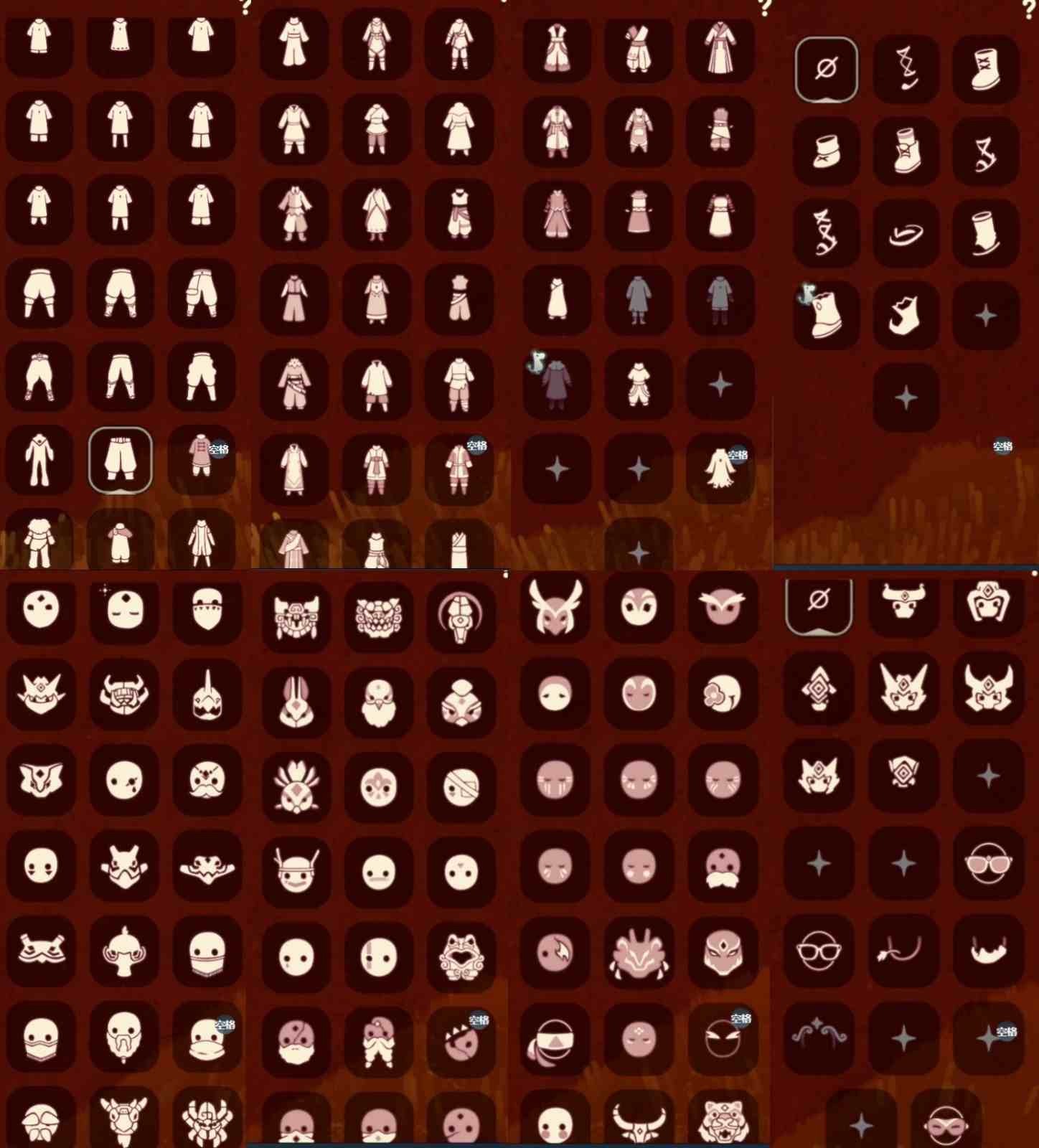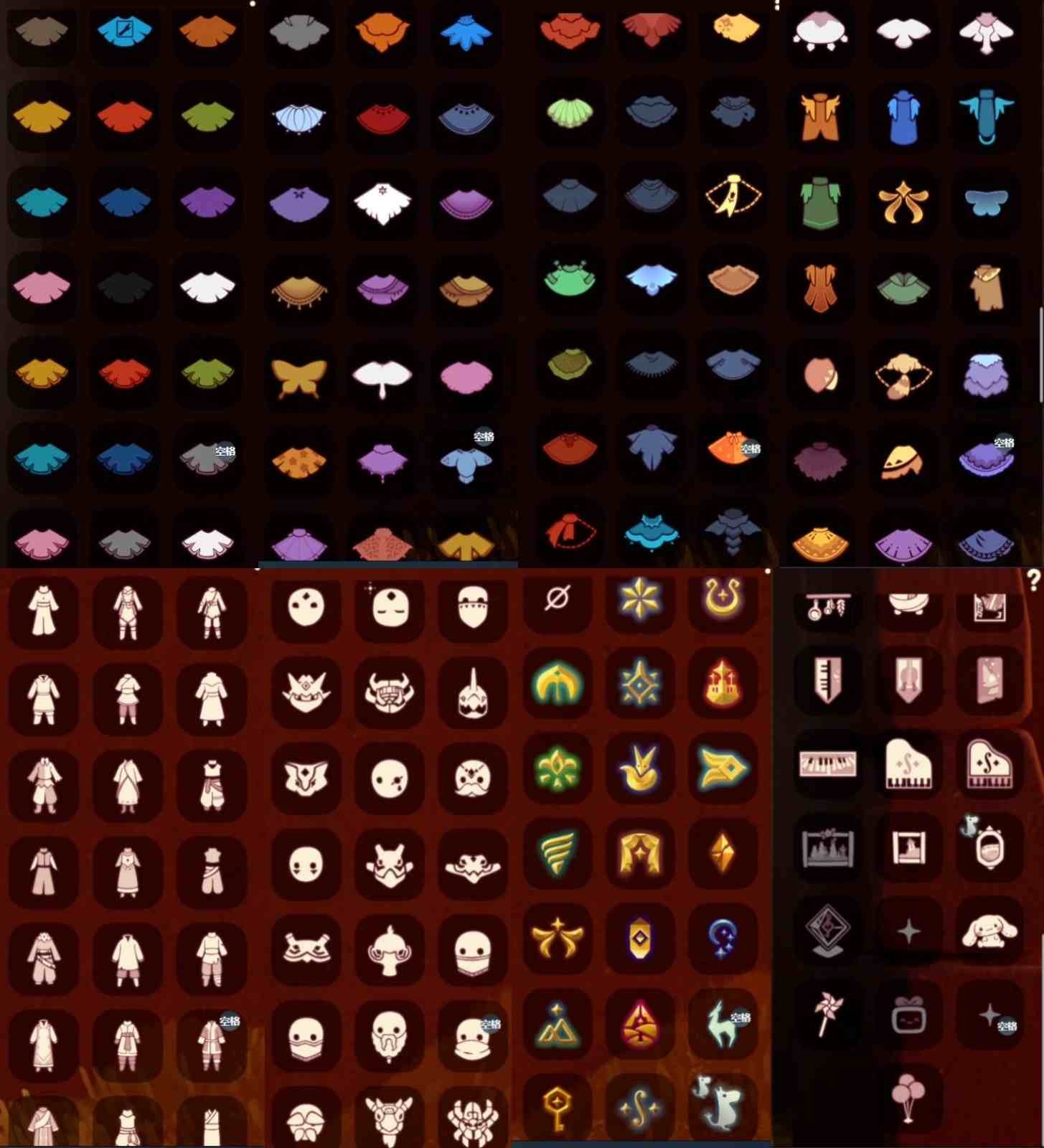 奔离远行裤 挚爱裙 女巫裙 星月头饰 彩虹耳钉 彩虹耳机 鹿角 枯角 蝴蝶结 水母肩饰 奔离远行发 彩虹帽 绊爱 锦鲤套 福娃 绒绒帽 朋克 巫师 贝壳头饰 雪花头饰 兔子头饰 橘子头饰 锦鲤头饰 蝙蝠斗 蛛丝斗 雪人斗 白绒斗 瑞雪斗 粽叶斗 欧若拉之翼 奉献斗 围巾斗 夹克 tgc 创始人 白吉他 音乐手碟 欧若拉之声 灯笼 阳伞 新春伞 雏鸟琴 船 二人茶座 三人茶桌 南瓜背饰 皮皮猫背饰 水晶球 烧烤架 秋千 跷跷板