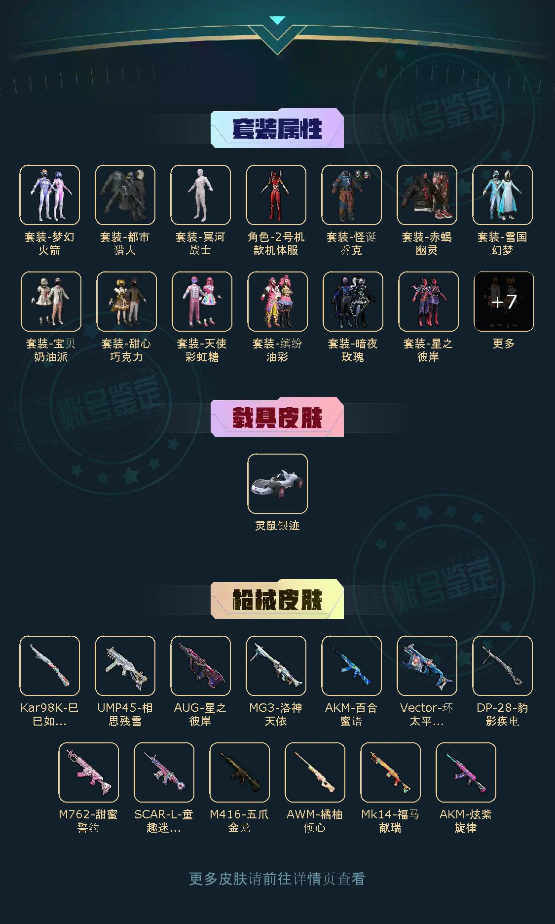【退款白嫖顶号拉黑】【开挂查信息起诉赔偿个人财产】16粉,1载具,178套装,SCAR-L-童趣迷兔/AUG-星之彼岸/AWM-橘柚倾心/M416-五爪金龙/AKM-炫紫旋律/MG3-洛神天依/Vector-环太平洋/AKM-百合蜜语/M762-甜蜜誓约/UMP45-相思残雪/灵鼠银迹/