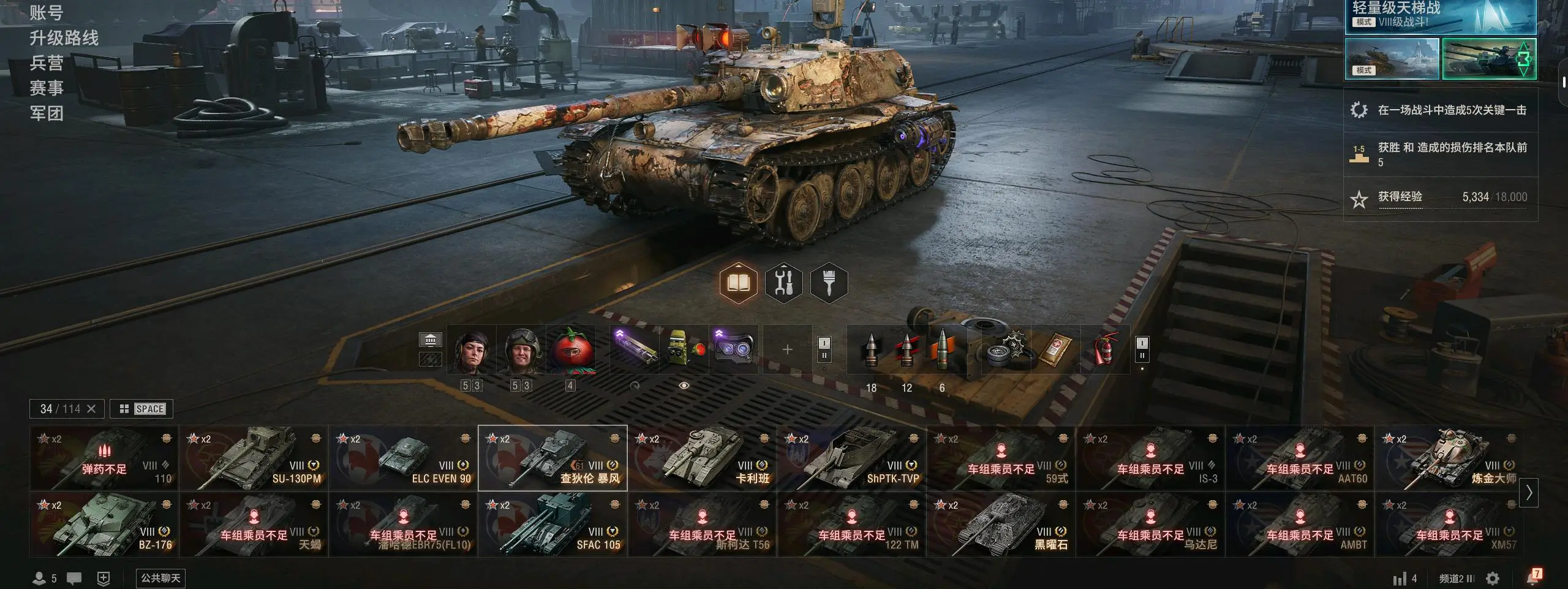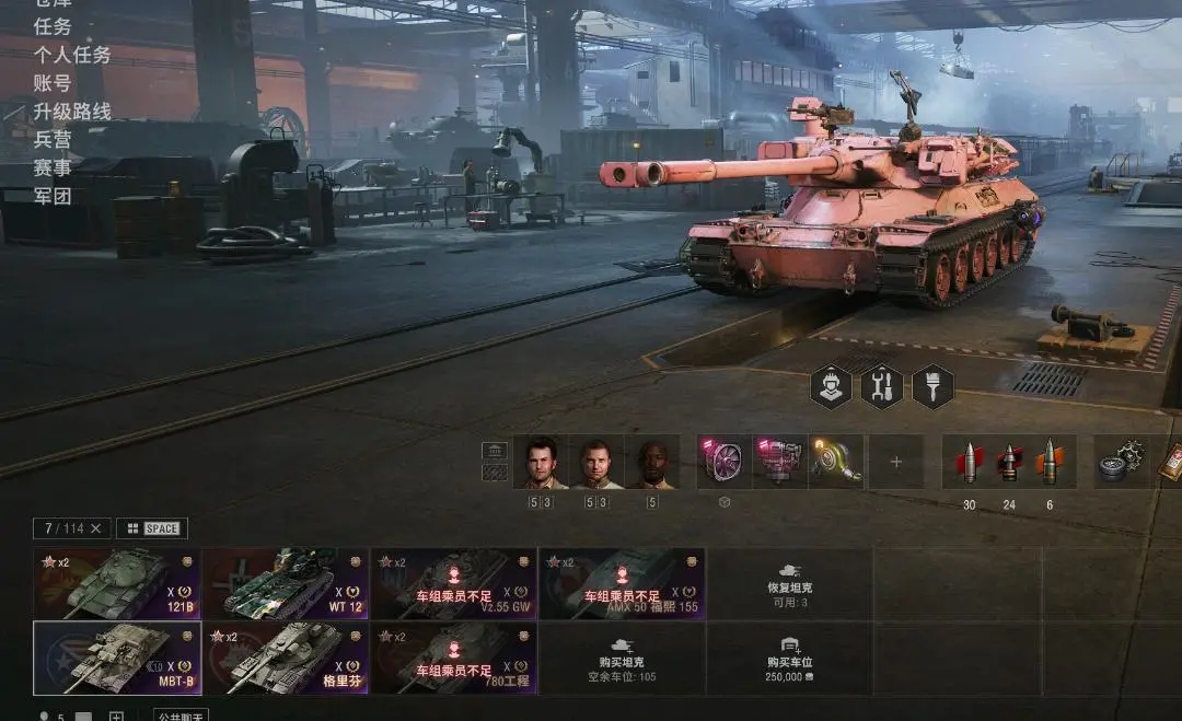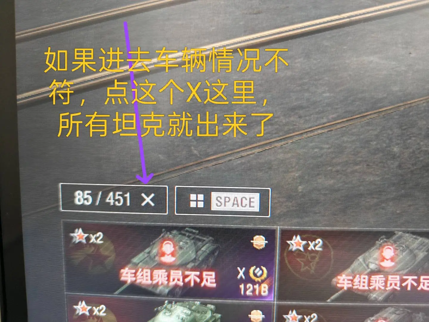 注意事项:1,进入游戏后,如果车辆情况不符。那是因为前面的玩家筛选了自己玩的坦克,其他的隐藏了。坦克显示栏,左下角小坦克标志,点进去把所有系别和级别选上,坦克就全部出来了。