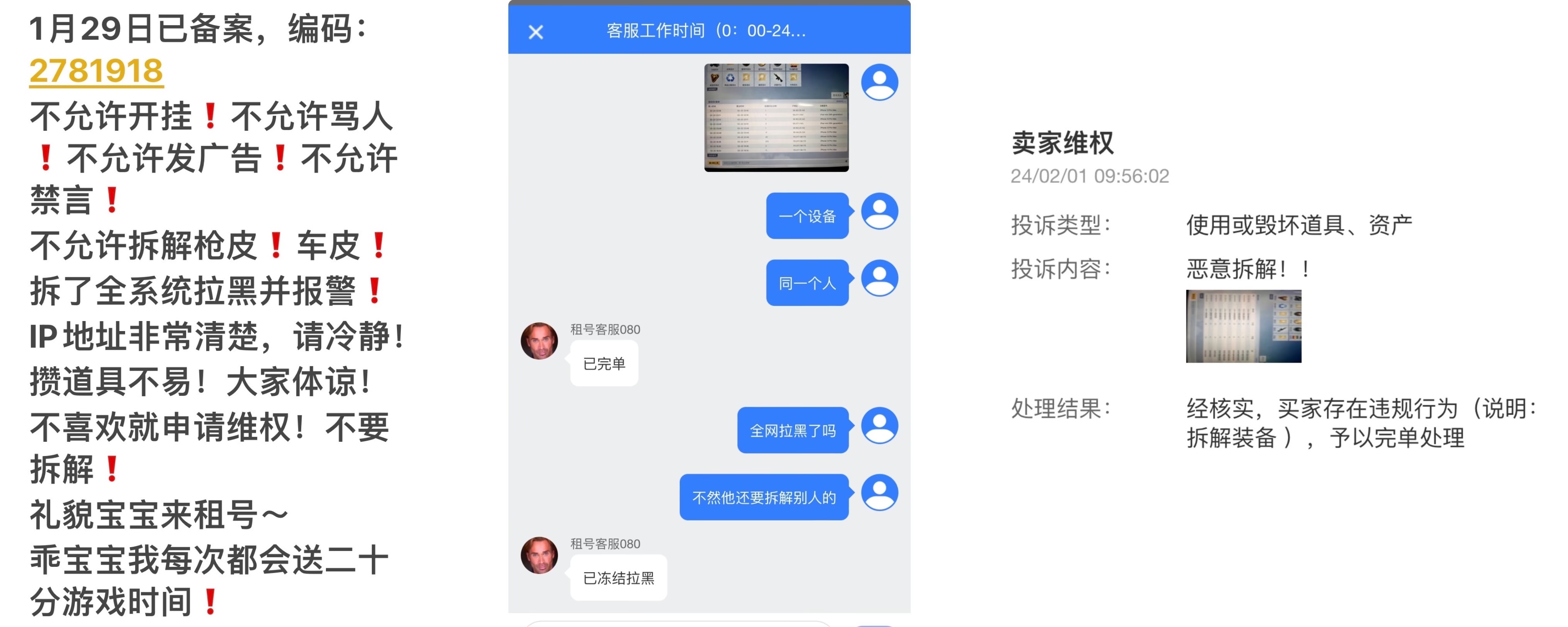 (租号详情:**租号期间禁止使用第三方辅助工具上号,禁止使用模拟器登录,禁止分解枪械和升级车,如出现账号封禁情况,一律通过实名人信息/手机号/ip登录地址追究其法律责任,平台协助警方法院起诉账号价值赔偿金额!)