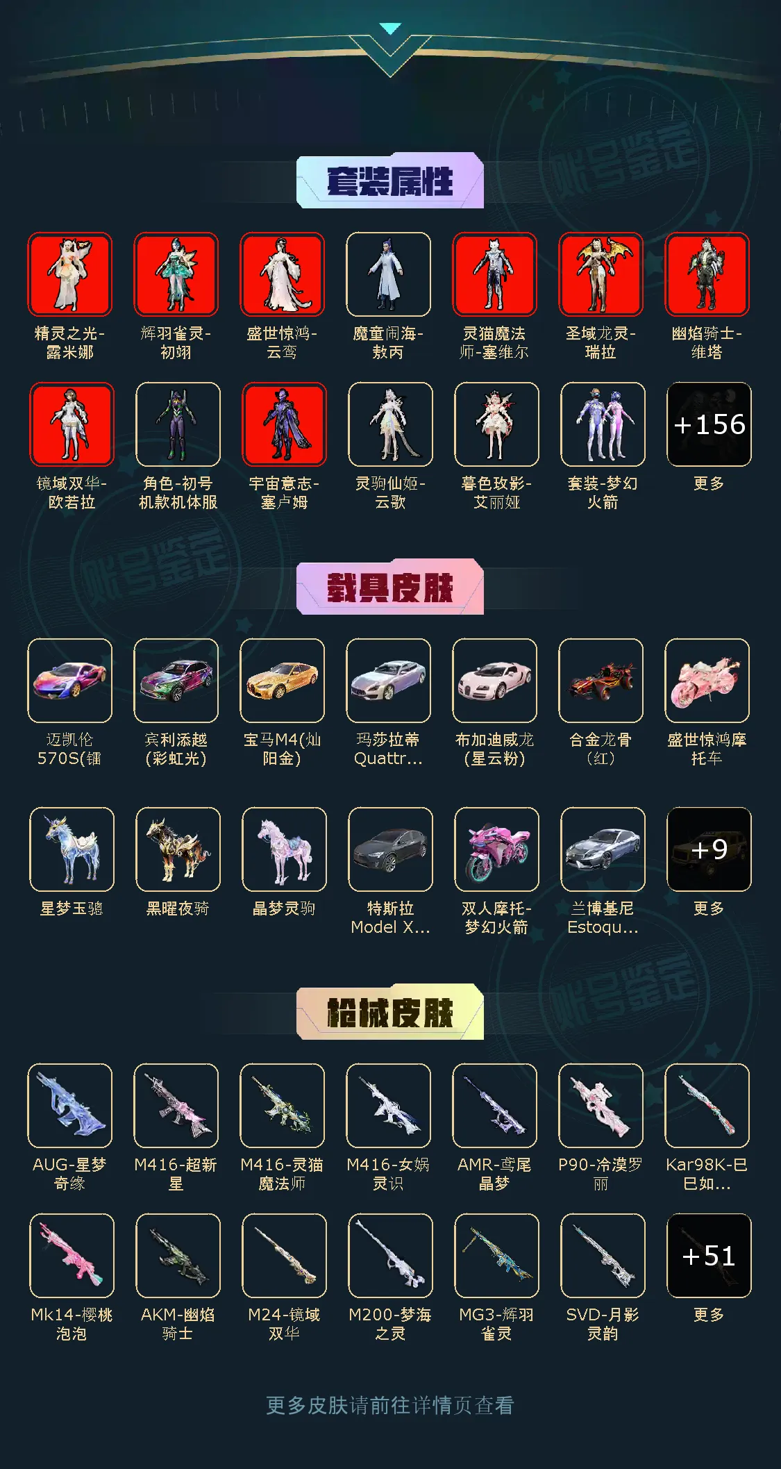 新增:虹云熊熊、暮夜私语、绶带小兔、大漠长河、极地冰晶、蜜语粉晶、🈵️灵驹仙姬-云歌、辉光之愿、花中眠、水中影、月中灵、旋星之夜、小舞四套、绛云霓裳、整点薯条、彩虹骑师、会说话的汤姆猫、暖暖麦兜、极夜星羊、拉面少女、顽皮橙、小熊虫、回旋牧梦使、云端星象师、杯旋调茶师、牧梦使飞行器四人🈵️级、霁蓝缠春、甜美闪耀、魔力圈圈、香香汉堡、芝士鼠鼠、摩卡猫猫、甜橙豚豚、绯月迷踪、玫纹锢梦、黯羽织刑、灵公主、时希公主、乐音、魔法花灵、超新星舞、优雅婉拒、狂魅哈莉(衣服车皮)、圣穹绘梦、小鸟芋圆、辉羽雀灵全(初翊🈵️级)、幻海仙踪全套(无枪)、幻海仙踪飞行器🈵️级、智耀战神全套、绯果甜心、果冻柠檬、瑞拉全套(🈵️级瑞拉可切换)、僚机圣域灵宝、圣域金龙飞行器满级、绒绒粉兔、星月云朵、晨曦轻云、雪夜云雾、星月云朵飞行器满级、翎光蝶翼、冰晶湖光、琉璃花蕾、樱桃泡泡、蜜桃派对、糖霜甜心、满级女娲灵识m4、纯白跃动、暗夜风云、蓝调潮影、晶梦幻蝶全(无枪)、熊二熊抱抱、小狗蛇点点、晶梦灵驹、盛世惊鸿全套(包含背景)、宝马m4(圣保罗黄)、海琴烟、新红装盛世惊鸿云鸾、月影灵韵、女娲灵识、动态背景(喜乐灯会)、酣梦熊熊飞行器。