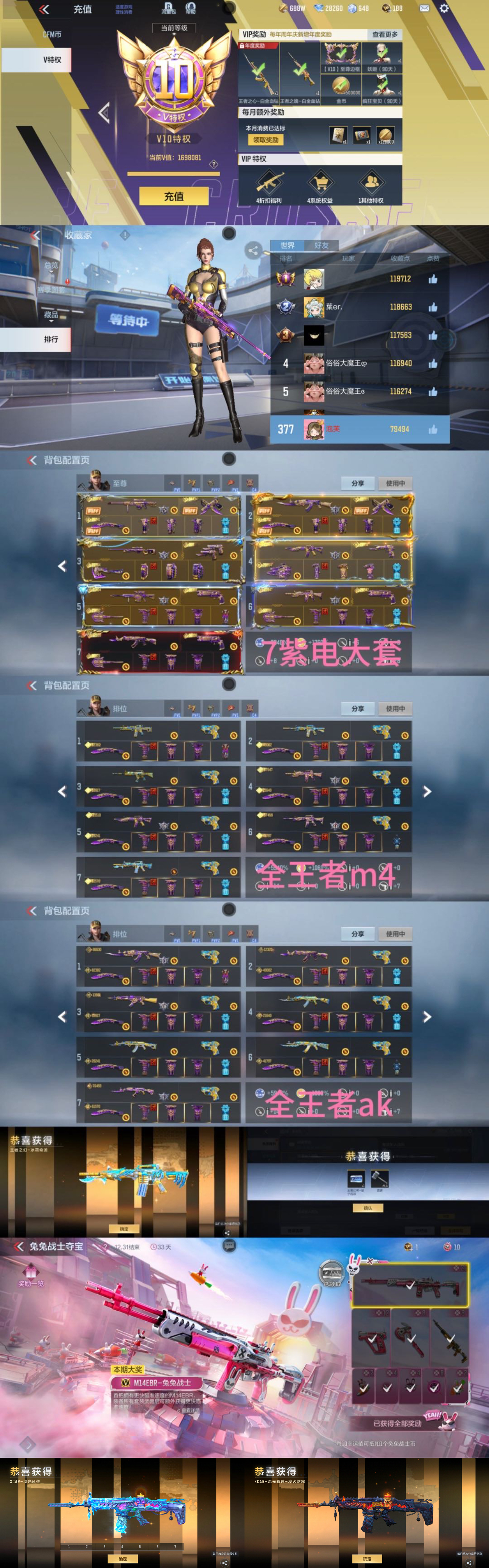 M200权 孙权 7安琪拉Cop 王者之蝶 王者之霆 王者蔷薇 星象c4投掷全皮