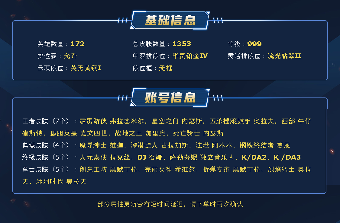 ~~喜欢记得收藏~~可排位~~1100皮全英雄丨792原皮284炫彩丨40神话/至臻/海克斯丨星守风女丨勇敢的心丨觅心悠米丨甜心格温丨鼠年瑟提丨神凰行者霞丨青花瓷冰女丨西部天使艾希丨电玩女枪瑞文丨泳池女警佐伊丨KDA狐狸寡妇丨玉剑男刀女刀剑圣丨灵魂莲华狐狸锤石亚索莉莉娅~~租之前尽量查一下游戏ID,确保段位是您需要的,避免浪费您的时间~~请勿挂机逃跑故意送人头,谢谢合作,谢谢~~