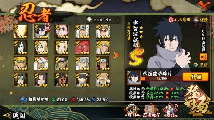 【安卓】 22S 九喇嘛鸣人永恒万花筒佐助忍战樱普通自来也豪杰自来也大蛇丸普通纲手百豪纲手死门凯