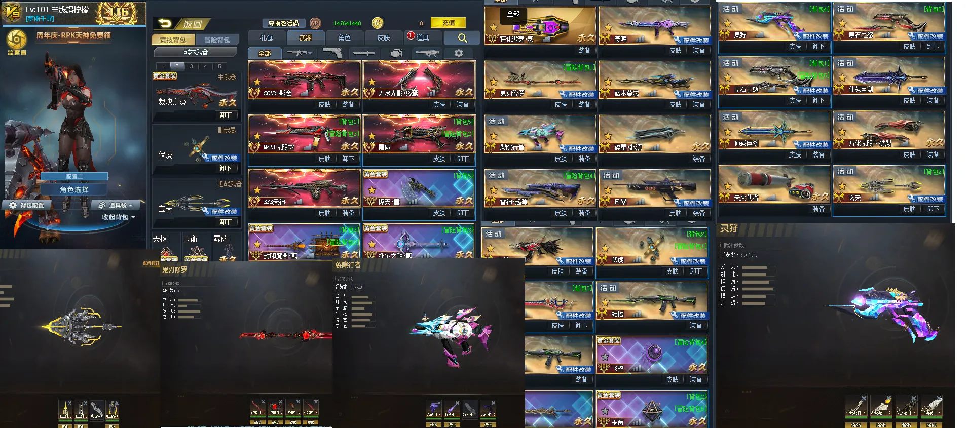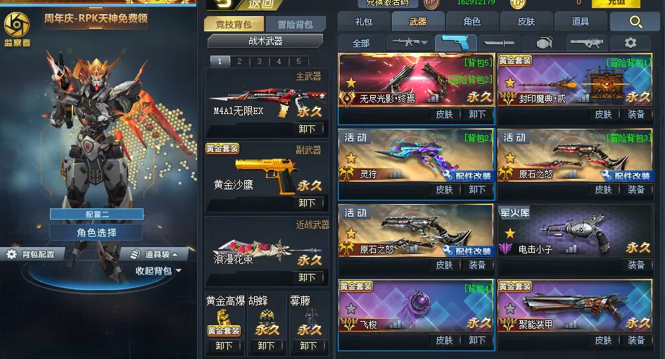 纯竞技,五传说,无限,屠魔,影魔,rpk天神,无尽终焉,满配湮灭,满配猎犬,玄天124配强化,裂隙12配强化加4配,满配风暴,双原石满配,灵狩满配,仲裁2把,一把满配带皮,撼天一,领域两把,一把满配,鬼刃满配,花束一把,激素二,魔方二,自律守卫满配,命运透视白板,角色捣蛋鬼龙女等 天火使者