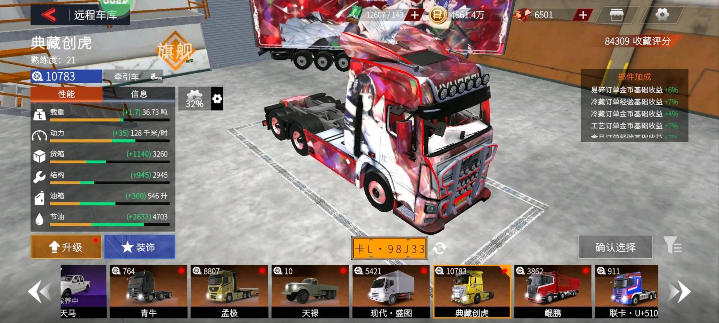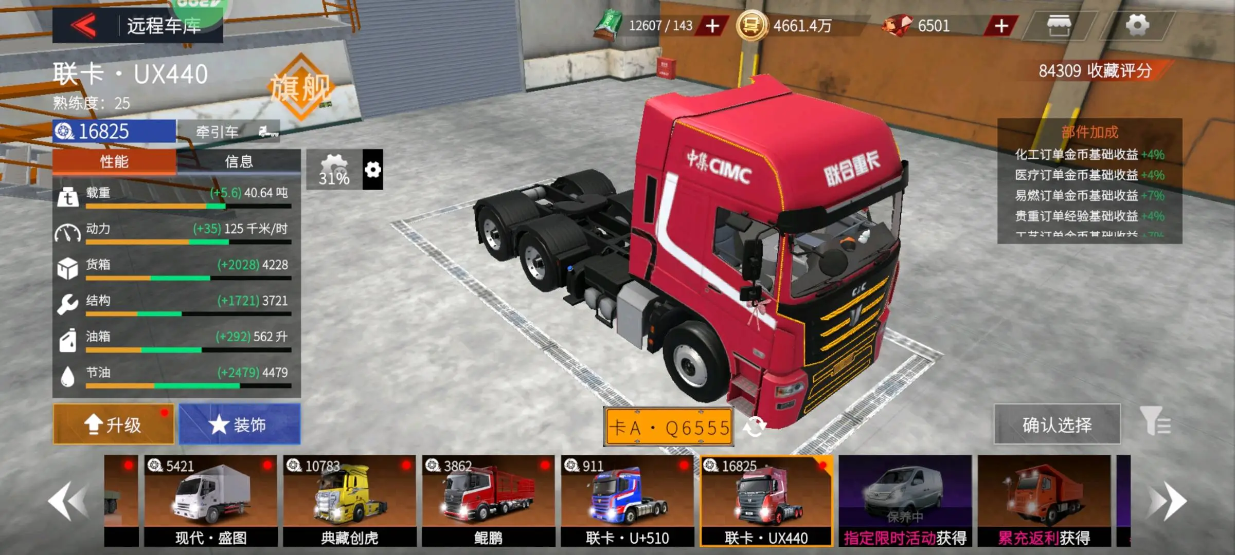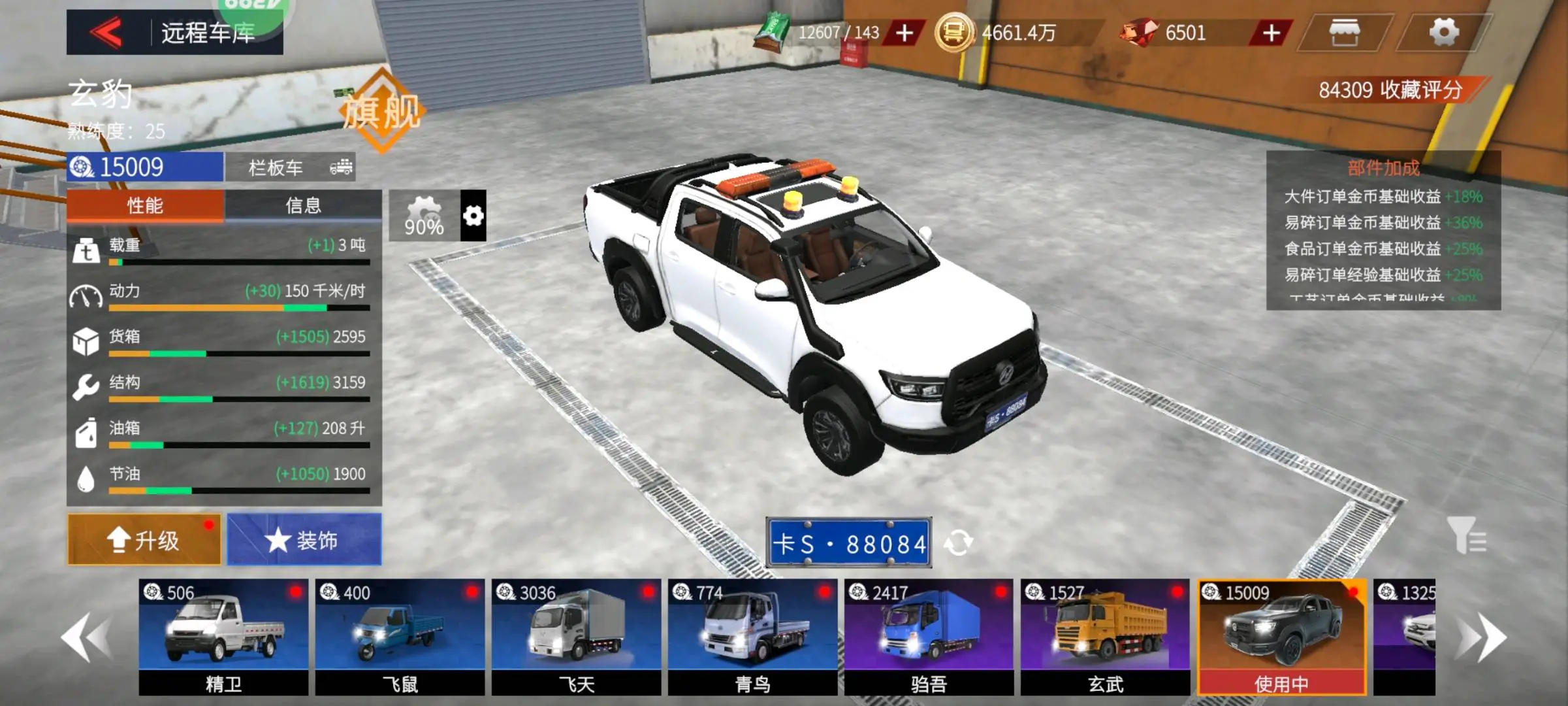 【安卓】 卡车人生《《指南村》》区。典藏车动态皮肤,玄豹150,440,有终身卡,游戏账号4399游戏盒