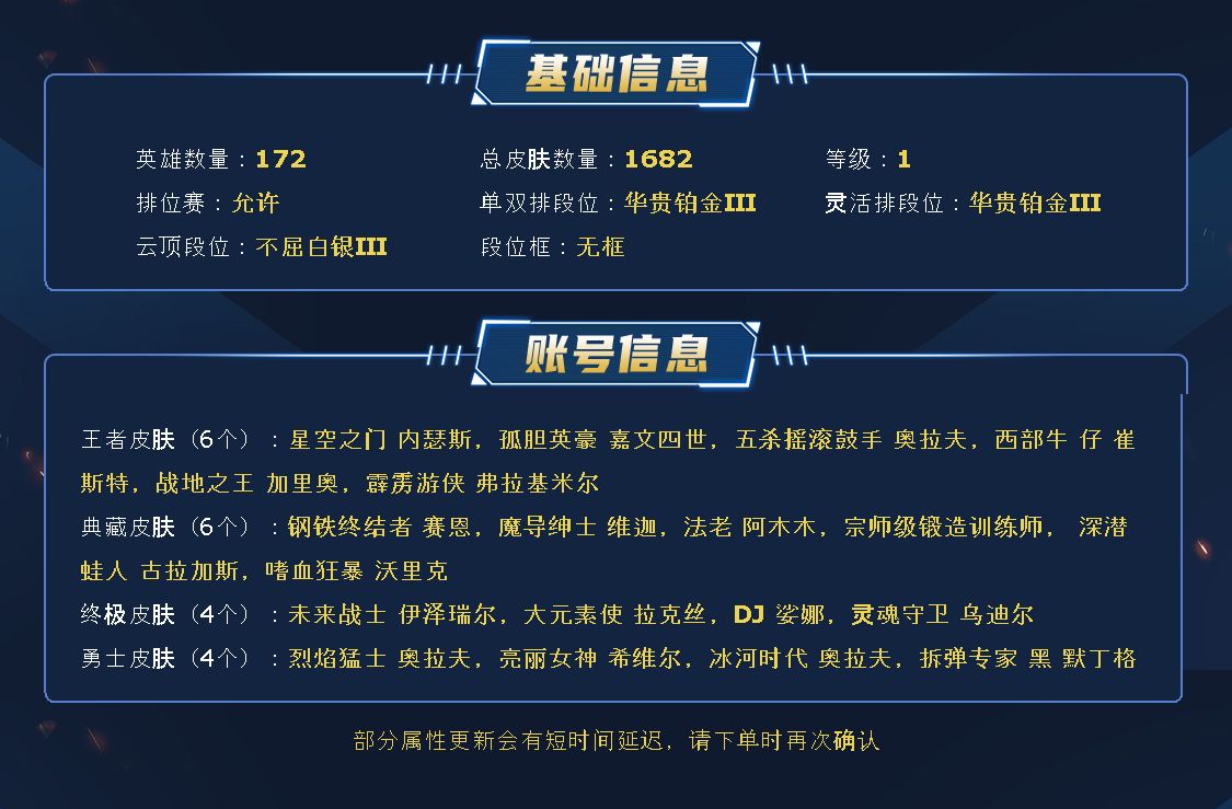 ~~喜欢记得收藏~~可排位~~1630皮全英雄~~租之前尽量查一下游戏ID,确保段位是您需要的,避免浪费您的时间~~请勿挂机逃跑故意送人头,谢谢合作,谢谢~~