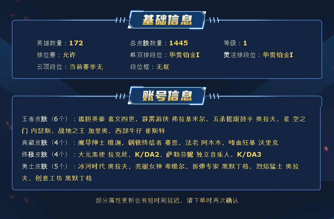 ~~喜欢记得收藏~~可排位~~1351皮全英雄~~租之前尽量查一下游戏ID,确保段位是您需要的,避免浪费您的时间~~请勿挂机逃跑故意送人头,谢谢合作,谢谢~~