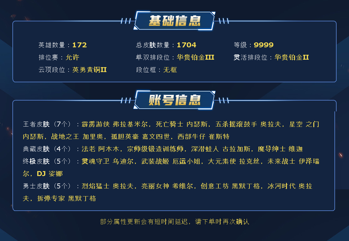 ~~喜欢记得收藏~~可排位~~1592皮全英雄丨100神话/至臻/海克斯丨IG套丨神龙尊者套丨灵魂莲华套丨剪纸仙灵套丨福牛守护者套丨春晖套丨甜心格温丨泳池佐伊丨甜心琴女丨银龙裁决丨替父从军丨勇敢的心丨破败锤石丨FPX锤石丨北极星佐伊皎月丨星守狐狸风女ez丨玉剑女刀剑圣剑姬丨电玩女警卡莎瑞雯丨至高天武器扎克薇古丝~~租之前尽量查一下游戏ID,确保段位是您需要的,避免浪费您的时间~~请勿挂机逃跑故意送人头,谢谢合作,谢谢~~