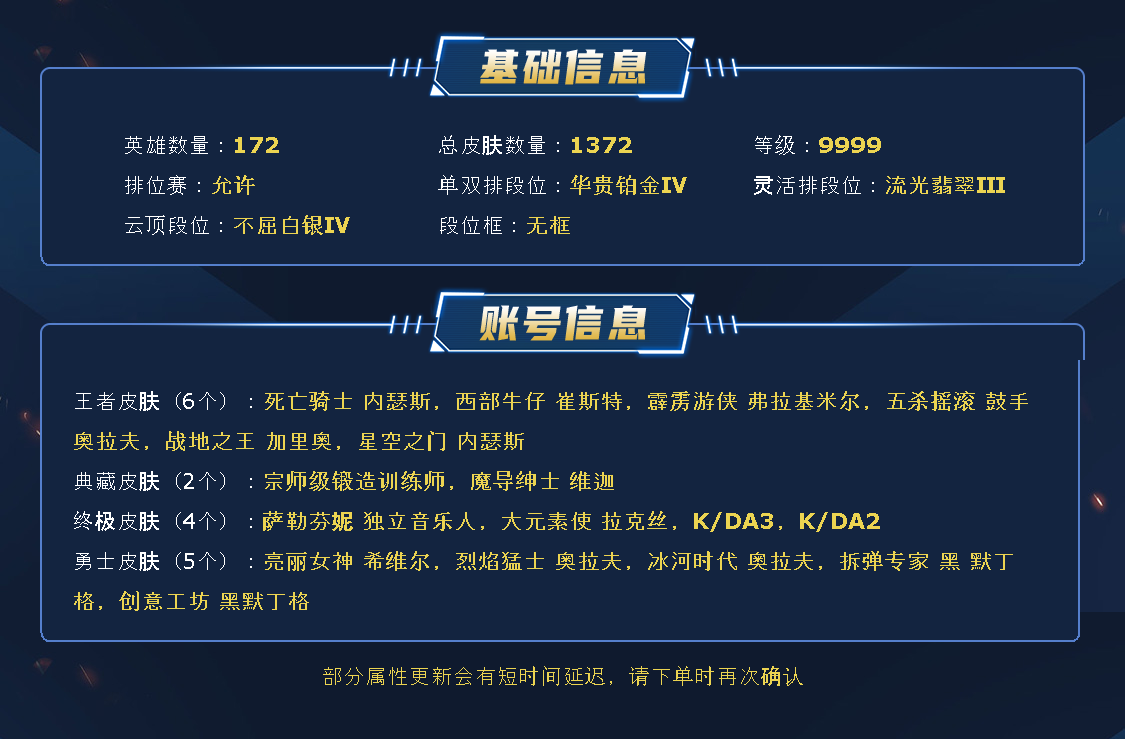 ~~喜欢记得收藏~~可排位~~1349皮全英雄~~租之前尽量查一下游戏ID,确保段位是您需要的,避免浪费您的时间~~请勿挂机逃跑故意送人头,谢谢合作,谢谢~~