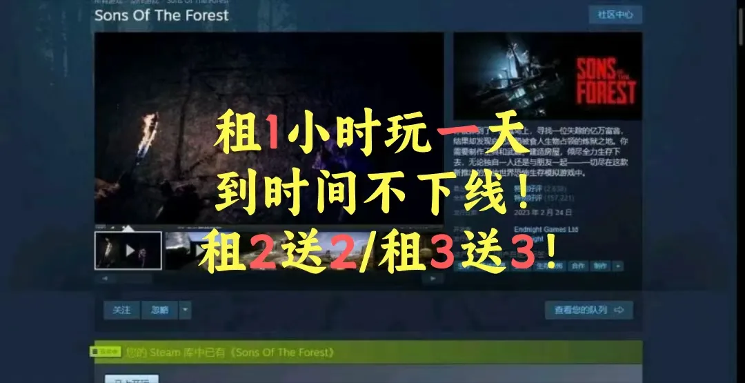【租2送2+到时不下线】森林之子✨Sons Of The Forest✅可联机✅可加好友❤️