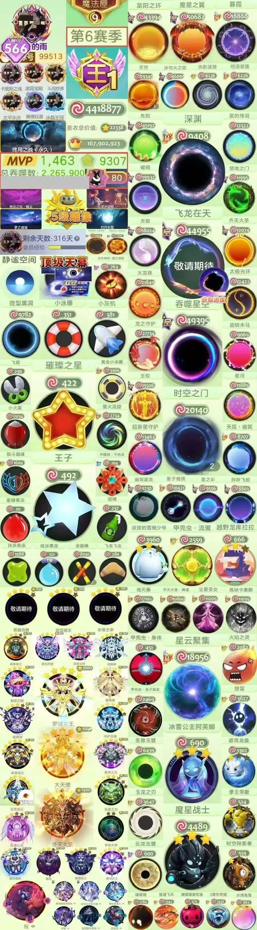 静谧空间*王570秀430万皮黑洞时空王子袍子满级阿芙娜深渊璀璨黄金泳圈十字架甲壳虫满级大天使满女王