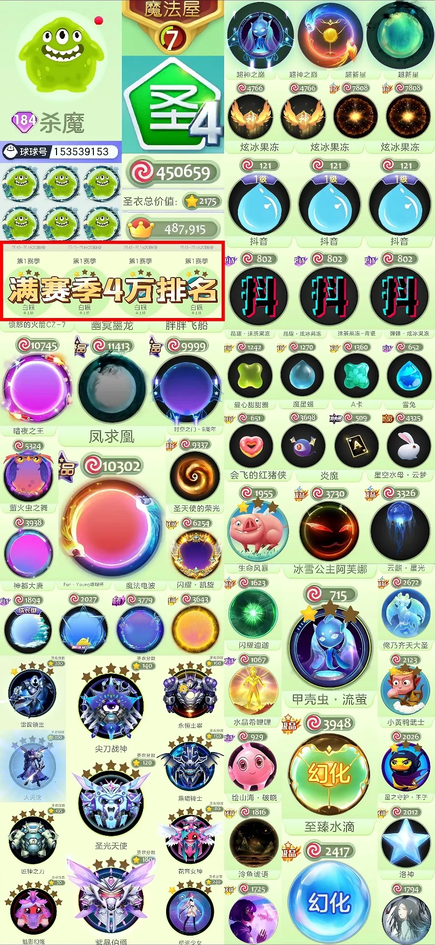 【全平台】 满赛季♥4万排名♥阿芙娜♥幻化甲壳虫幻化水滴♥抖音袍子炎魔第1赛季