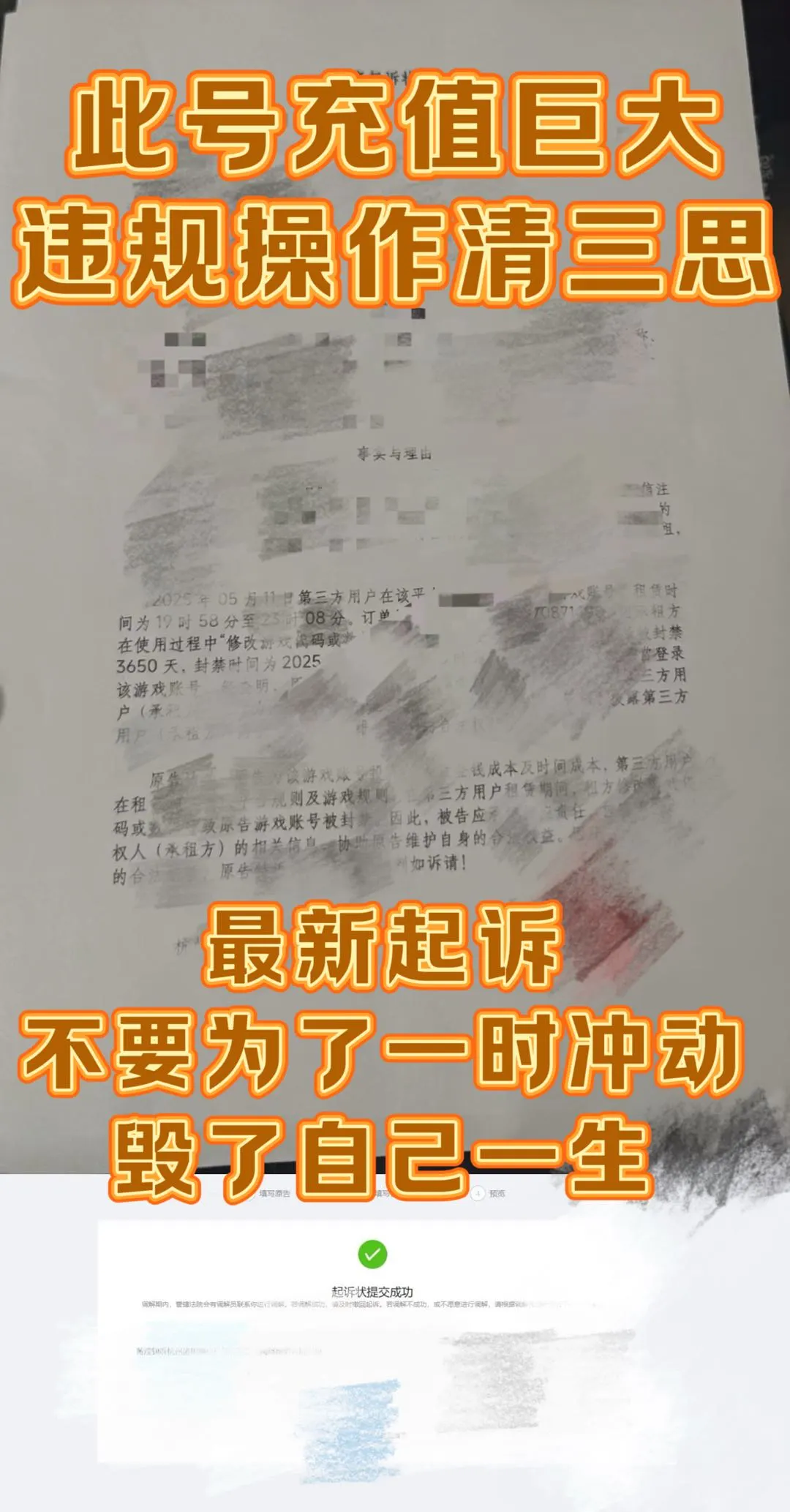 【友情提醒恶意撤单,全网拉嘿】✅租用协议📄下单租玩即代表同意以下内容:文明游戏,不使用外挂以及任何第三方软件,若出现游戏账号被封,必追究到底,我们有专业熟悉的经验,委托律师向法院起诉,平台配合警方调查,按照你下单所使用的手机IP地址、手机号、支付、游戏iP 、充值的号等信息,依法追究刑事责任及追回全部损失包含期间因为耽误损失的费用!此号充值巨大足够蹲3年,请各位朋友遵守规则,毁号开挂等不文明行为涉及毁坏虚拟财产罪及计算机安全罪,可以自己网上查询案列,不要因为一个错误而给自己留下一生的污点。