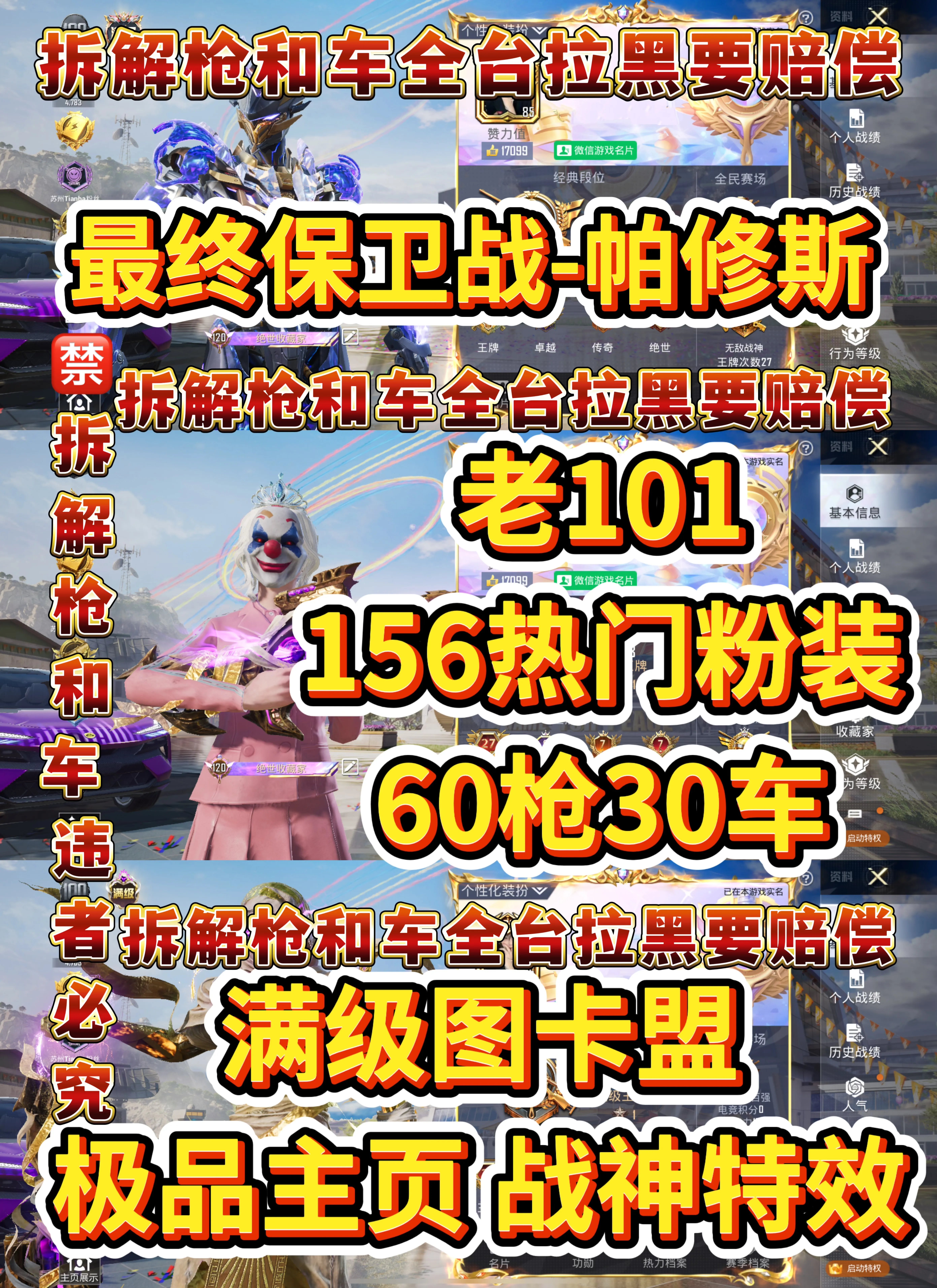 战神框+新红装帕修斯图卡盟沙丘之主双生可切换+老101+120满级收藏家+满级车满级枪❌拆卸枪械载具永久拉黑下单默认认同此协议📒立即生效