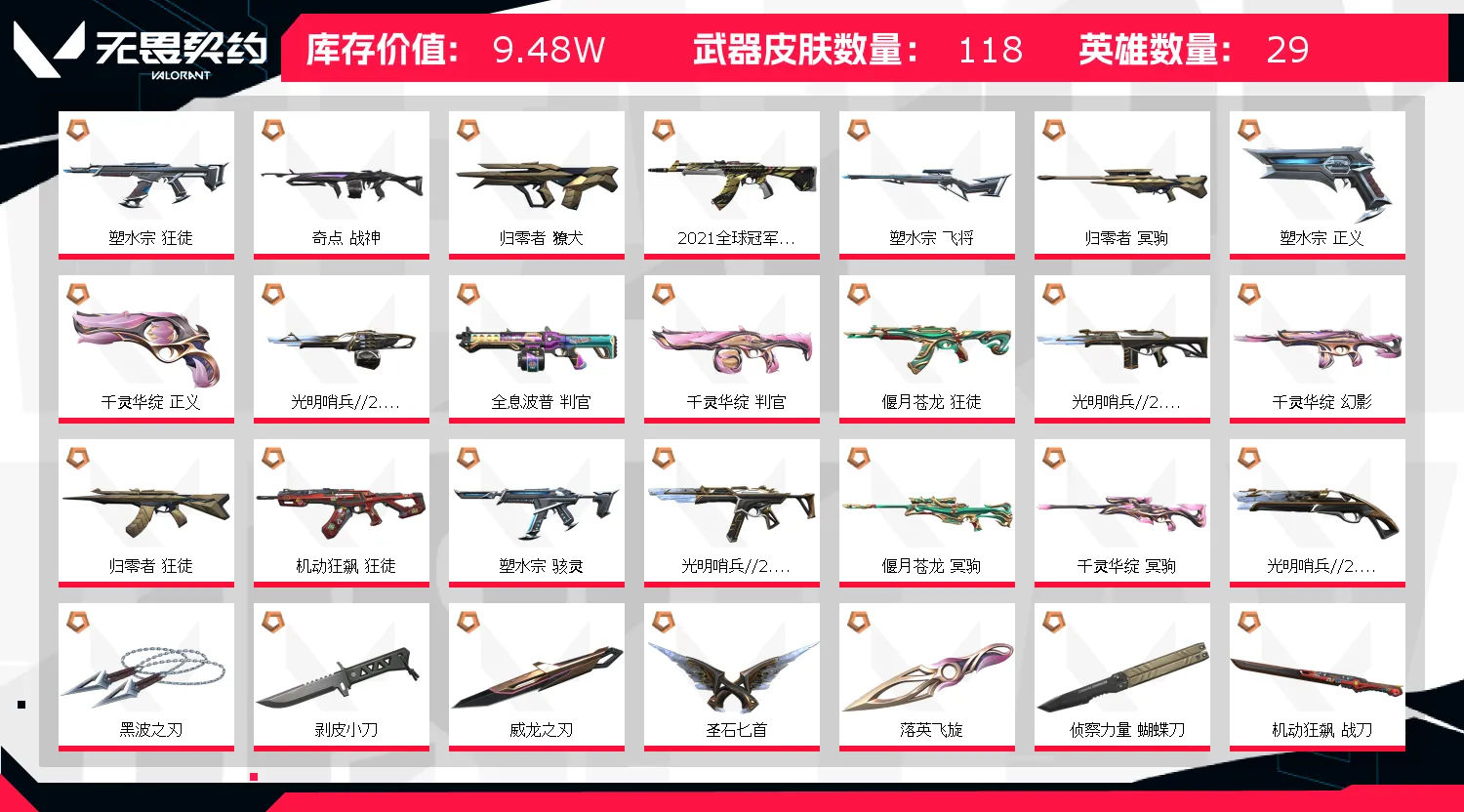 - 武器皮肤数量: 118