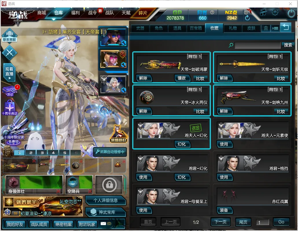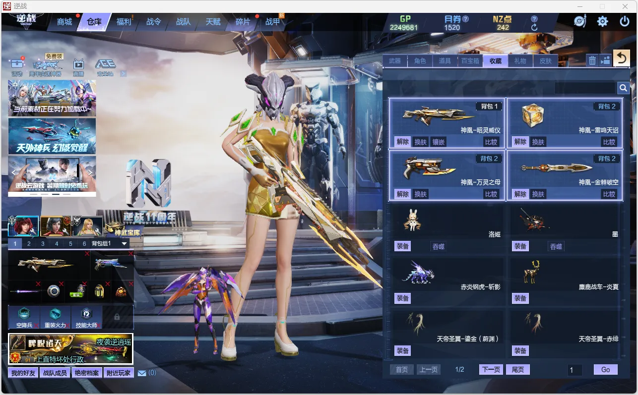 神凰天帝套六核心、洛姬墨、耀阳苍龙之戒-黑天之怒、陨星套-天启套深渊之瞳-诸神套-创世、炎狱龙魂、极夜双星、飓风之龙、纪元之辰、冰神、朱雀天王炽鬼青龙、极夜星辉\黑金仲裁者\能源之影、二级百宝箱、风遁、小幽灵露卡、麋鹿、仙蒂、鲲灵玥、烈焰犬、战斗神翼、希亚、海拉、至宝圣鲲、小达古、希弥斯之辉光羽翼-赤红战翼-------------等等装备太多不一一赘述