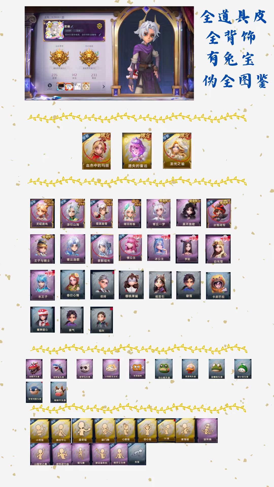 【全平台】 新氪幻梦✓镜生遗梦+辞花镜✓S1234全满✓ 4耀世满抽✓ 皮肤全满✓ 抽奖全满✓✓ 真全图鉴