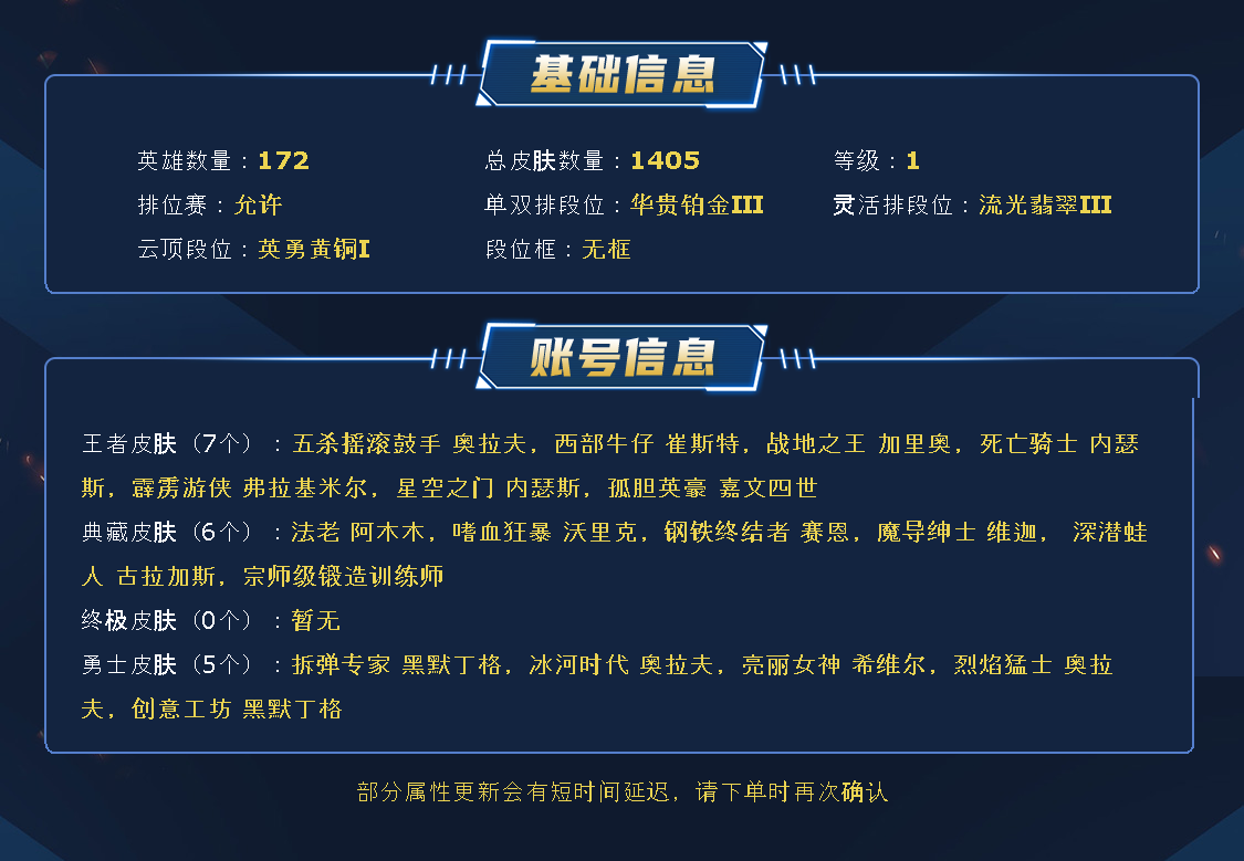 ~~喜欢记得收藏~~可排位~~1391皮全英雄~~租之前尽量查一下游戏ID,确保段位是您需要的,避免浪费您的时间~~请勿挂机逃跑故意送人头,谢谢合作,谢谢~~
