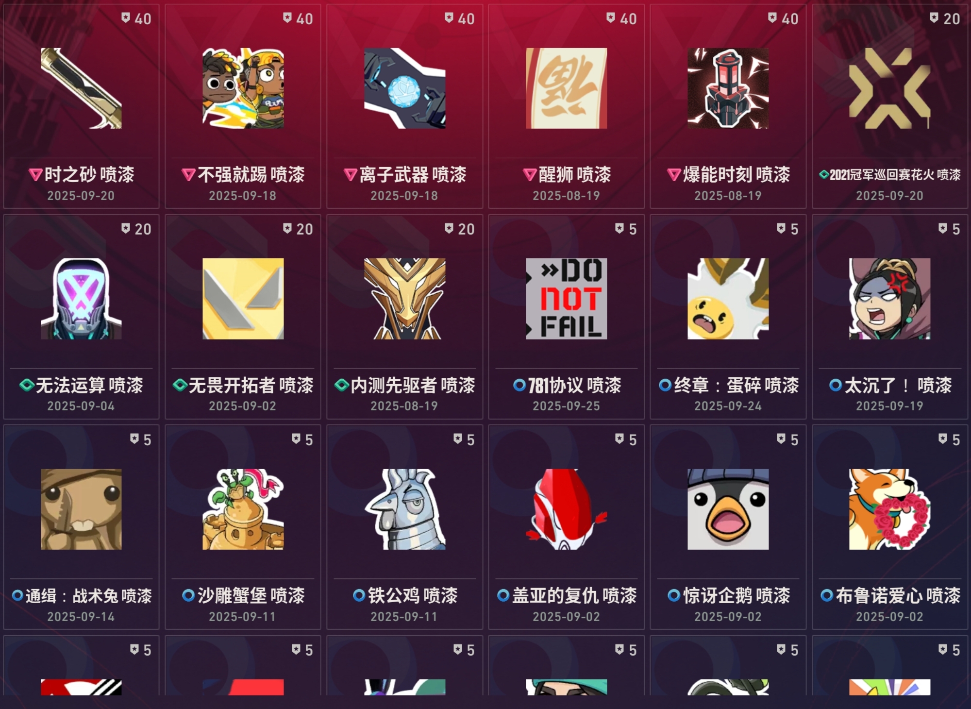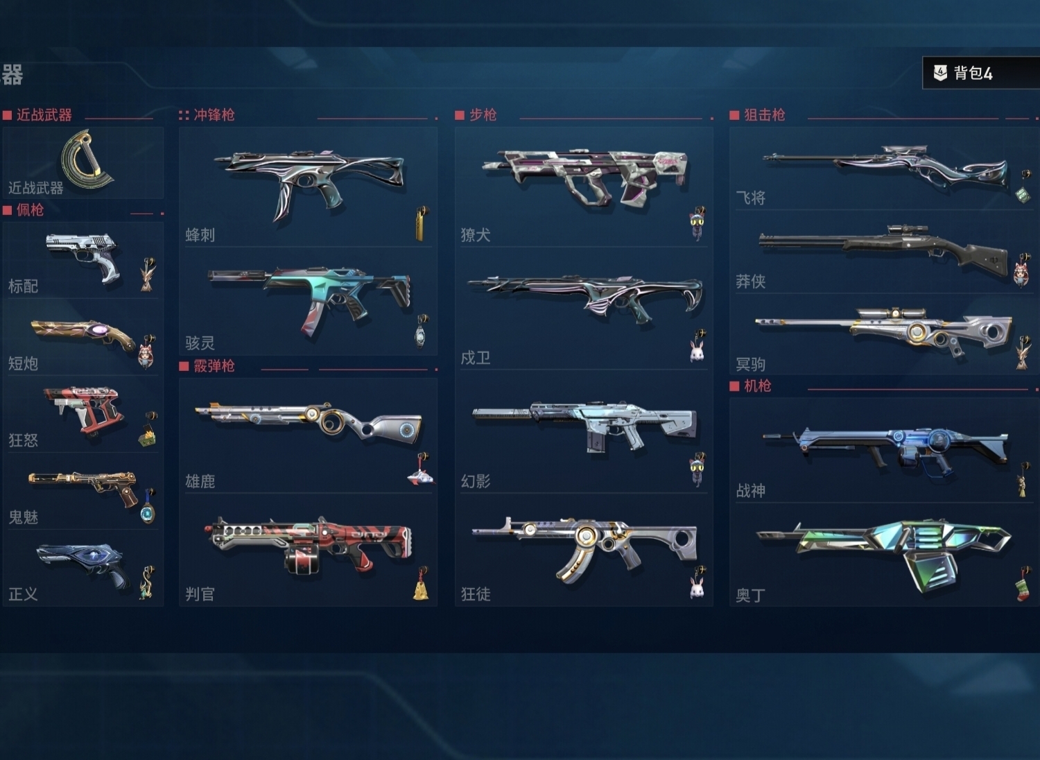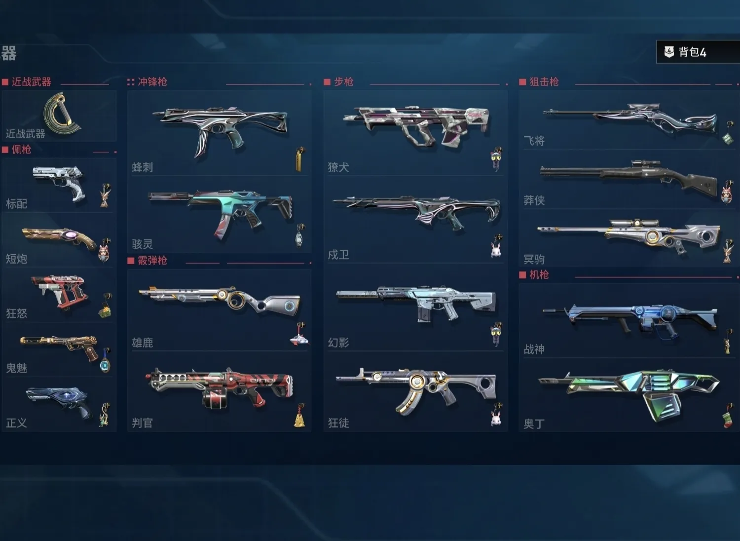 近战武器:离火刃2级紫色/vct2025爪刀满级全炫彩(vct爪刀)/誓约之剑2级虚空/威龙之刃2级银色/光息飘移苦无2级暗闪/灵魂冲击镰刀2级/剥皮小刀2级/艾沃莉的魔法棒2级粉红/青瓷影2级绽棠/狂沙之拥2级/沧澜戟2级深蓝/紫金爪刀2级/起源环刃2级/荧光刀2级/再见安打2级/无畏契约第1卷苦无2级/推进模式前进四2级银蓝/澄湖涟滟2级鱼扇/偃月2级白色/堕天遗武仪式匕首2级/辐爆之杖2级/个人近战单位满级/离子武器能量剑2级/盖亚之怒2级蓝色/全息匕首2级/醒神破2级全炫彩/天玄刀2级/侦察力量蝴蝶刀2级全炫彩(侦察蝴蝶刀)/金琅斧2级/巨神铁甲短剑/神罚军刀(神中神)