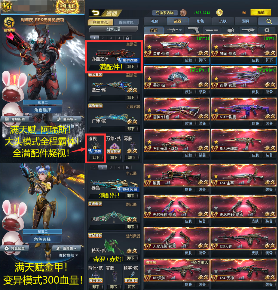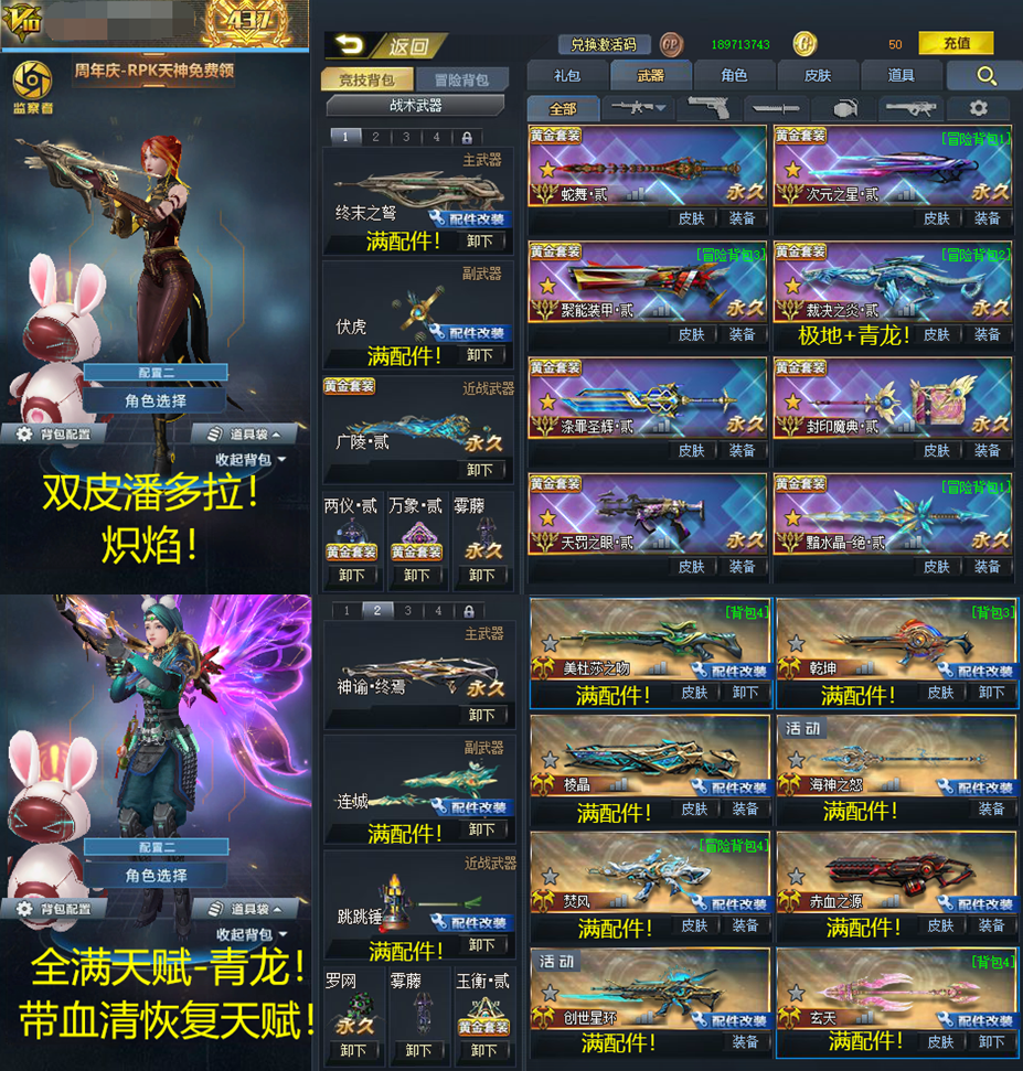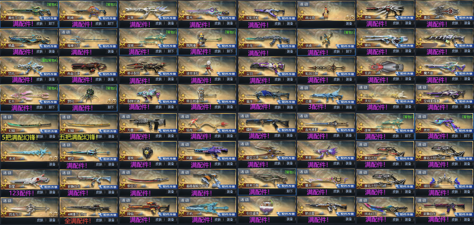 满配件:凝视【全满配件AWM湮灭】美杜莎之吻!乾坤!尘埃!弧光!幻彩天虹!夜枭!盖亚!棱晶!海神之怒!连城!跳跳锤!子龙!伏虎!骑兵!赛傅!焚风!赤血之源!核子裂变!迷你派拉!尘羽!轮回之刺!玄武!摩羯座!玄天!裂隙行者!帝王战锤!蛮牙!冰-炎凰3配件!天引!空间掌握者!五把幻锋!万兽!焰龙!镭射!含光承影!灵狩!破空!风暴!虚空之矛!等等