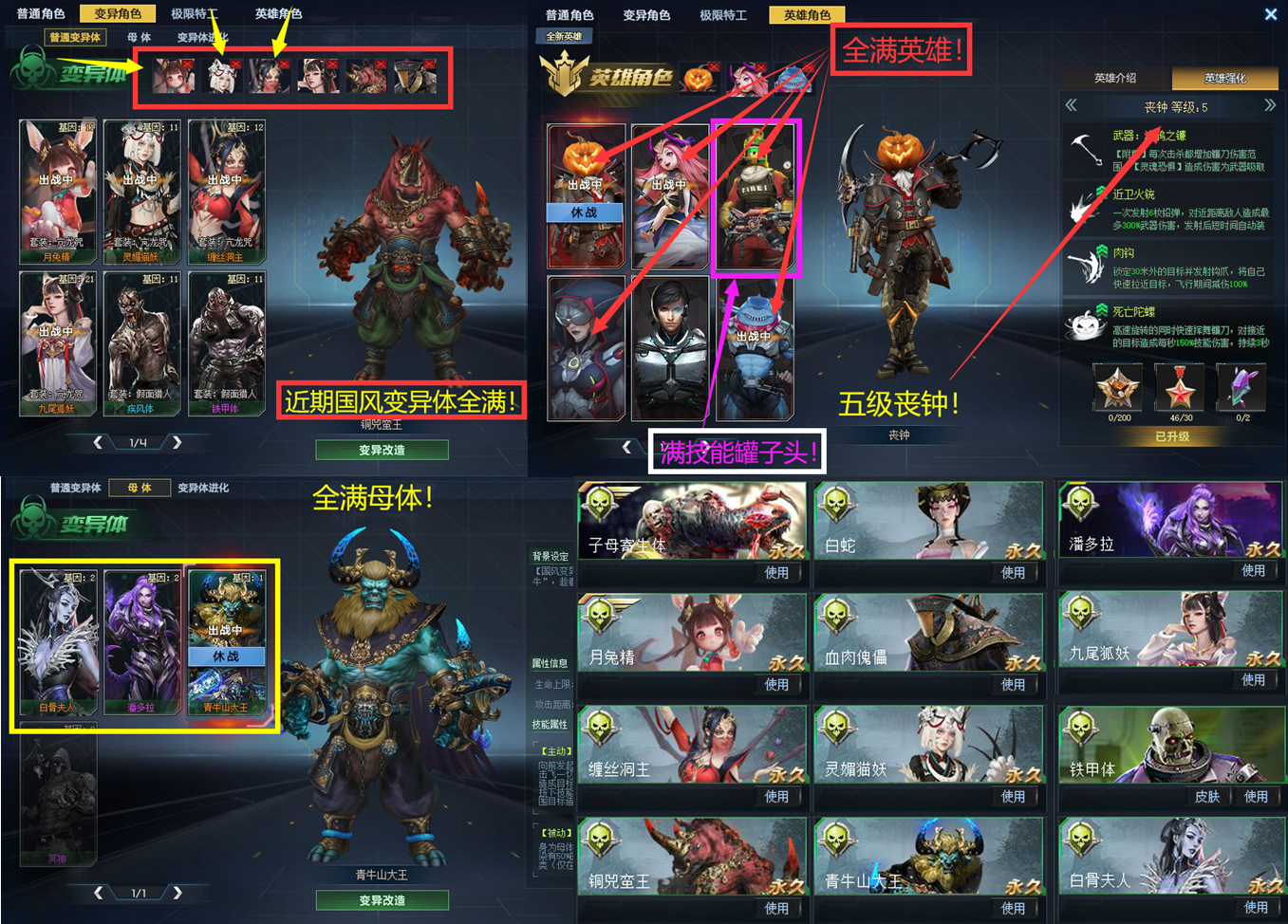 变异体:白骨夫人!青牛精!潘多拉母体!犀牛!九尾妖狐!玉兔精!白蛇!血肉傀儡!蚕丝洞主!灵媚猫妖!