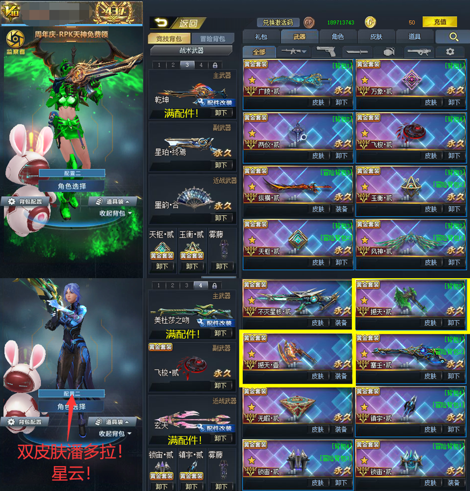 十七把传说!双皮肤潘多拉!星珀+神谕终焉!满天赋[阿瑞斯+金甲]满乾坤!满赤血之源!满棱晶!青牛精!