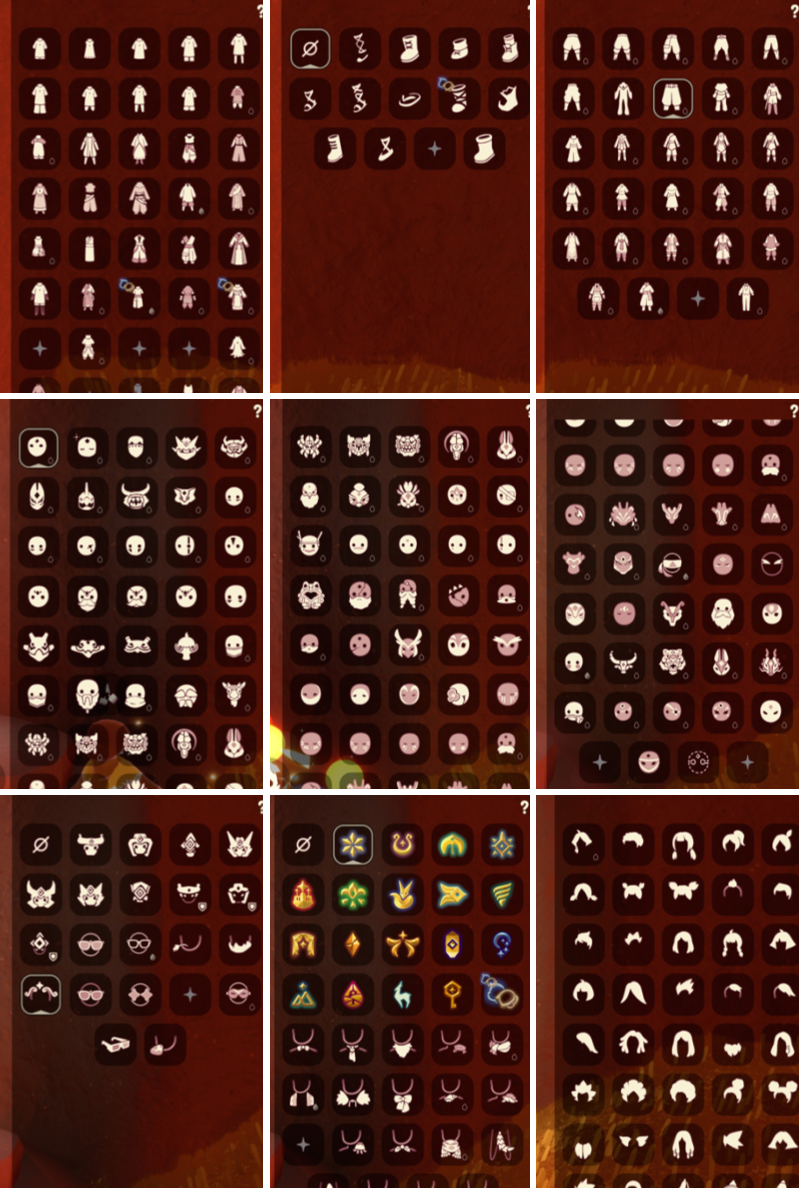 【稀有礼包】奔离远行服,致爱打扮,瑞气服饰,园丁装扮,彩虹武士裤,女巫裙,向日葵连衣裙,皮皮猫礼包,星月头冠,神鹿祝福礼包,彩虹耳饰,彩虹耳机,圣诞鹿角,冥龙角,大蝴蝶结,水母肩饰,夏日有友礼包,奔离远行发,彩虹帽,巫师帽,蜘蛛朋克头,贝壳发饰,雪花发夹,玉免发饰,小狗周年头饰,四叶草头饰TGC斗篷黑,创始人斗篷,小王子围巾,星球夹克,欧若拉之翼,奉献斗篷,异彩莲花斗,鲤跃龙门礼包,海龟斗篷,蝙蝠斗,蛛网斗篷,暖冬瑞雪,白雪斗篷,雪怪斗篷,绊爱礼包,粽叶斗篷,雏鸟之琴,音韵吉他,凯旋手碟,惊喜手杖,欧若拉之声,中秋灯笼,瑞气纸伞,夏日阳伞,小提琴,情人秋千,情人跷跷板,花想茶桌,小想茶桌,野餐礼包,狐狸背包,情人小船,冥龙南瓜,猫咪背饰,雪花水晶球,火点心,雪花水晶球,自然之声礼,周年庆抱枕,大铁头,超凡风之旅人礼包,大横大利,南瓜头,必胜客联动被萨,必肝客联动衣服,青衫落拓礼包,周年影综套餐礼包、常驻线框斗、蝴蝶与花发饰、小海生配饰、小苗鹏雨衣套装,小黄鹏发饰,活力海牛礼包,海牛玩偶礼包,福娃礼包,冥龙套装