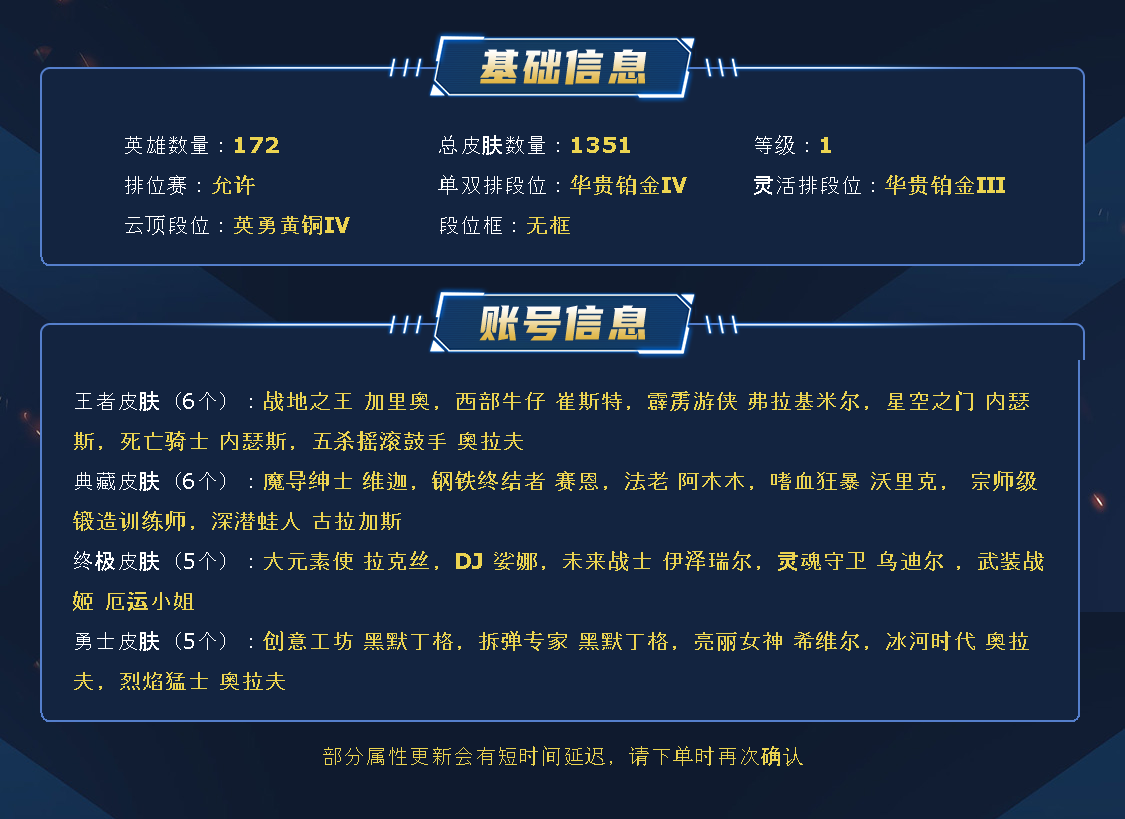 ~~喜欢记得收藏~~可排位~~1400皮全英雄~~租之前尽量查一下游戏ID,确保段位是您需要的,避免浪费您的时间~~请勿挂机逃跑故意送人头,谢谢合作,谢谢~~