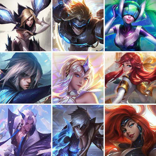 【重要头像】觅心游侠卢锡安 我麦是开的么 魔女艾希炫彩 击拳 KDA萨勒芬妮 小斗 可爱悠米 可爱安妮 烈焰美人薇恩 披萨鸡 送披萨的小姐姐希维尔 至臻KDA卡莎 至臻灵魂莲华提莫 至臻奥术师佐伊 至臻魔女婕拉