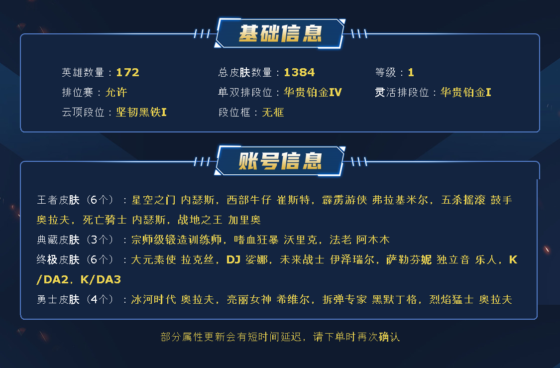 ~~喜欢记得收藏~~可排位~~1400皮全英雄~~租之前尽量查一下游戏ID,确保段位是您需要的,避免浪费您的时间~~请勿挂机逃跑故意送人头,谢谢合作,谢谢~~