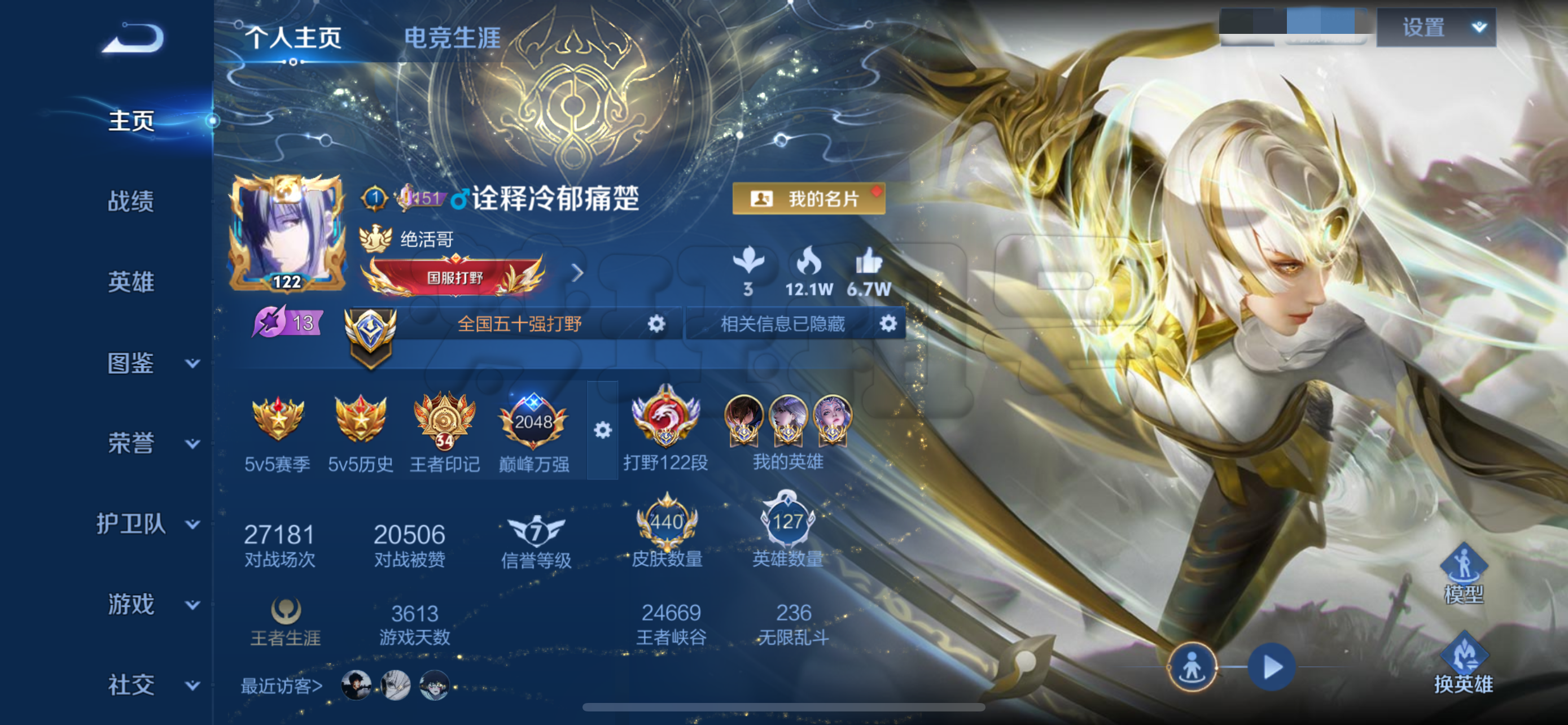 【苹果】 禁巅峰✨12月在榜金标兰陵王✨在榜国服122段打野分路✨巅峰2048万强闪电框✨历史2W镜老虎澜露娜
