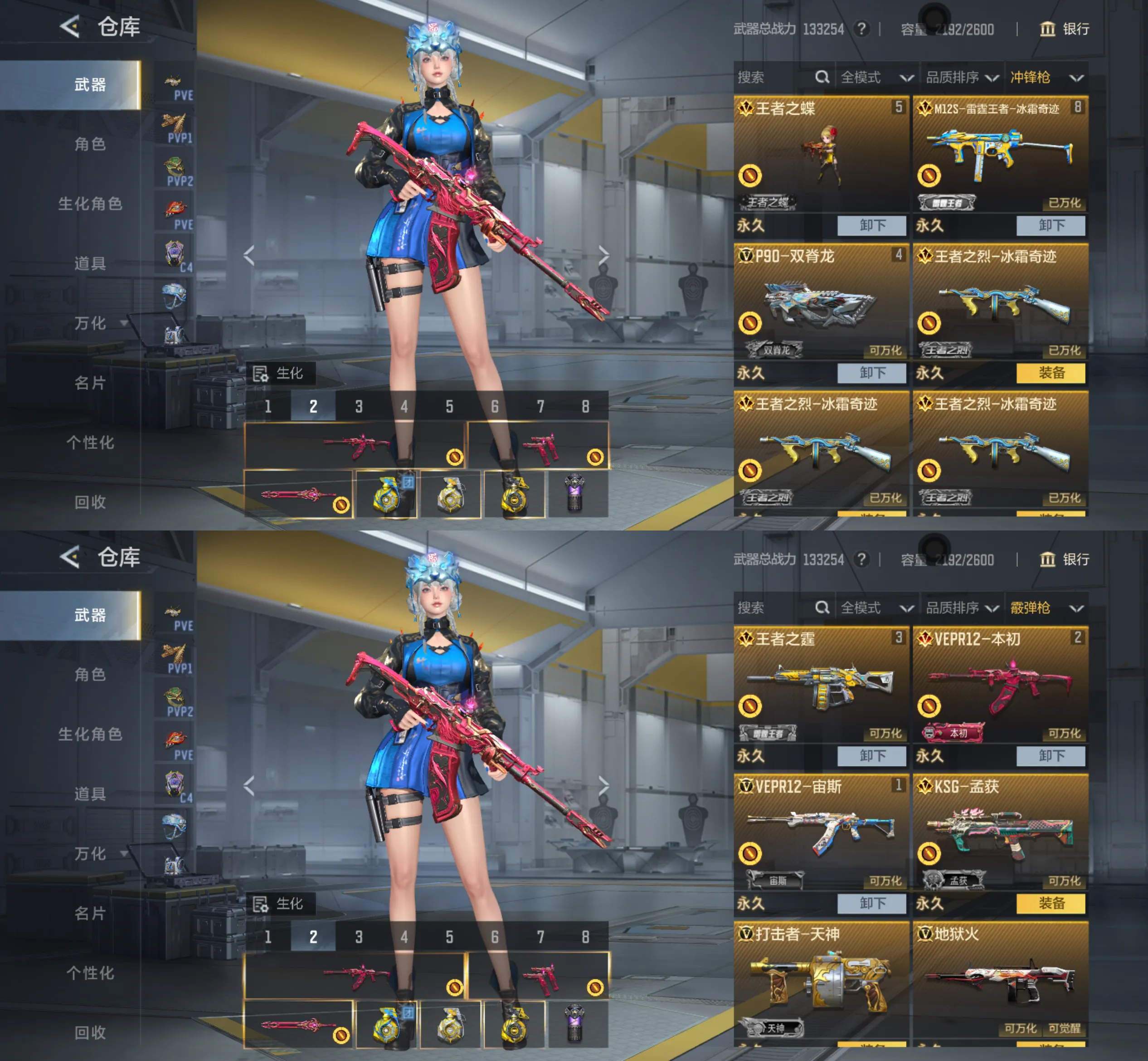 🔥生化推荐武器:王者之霆✨王者之狱✨98k蜻蜓✨王者雷霆✨王者之蝶6王者烈龙✨6王烈