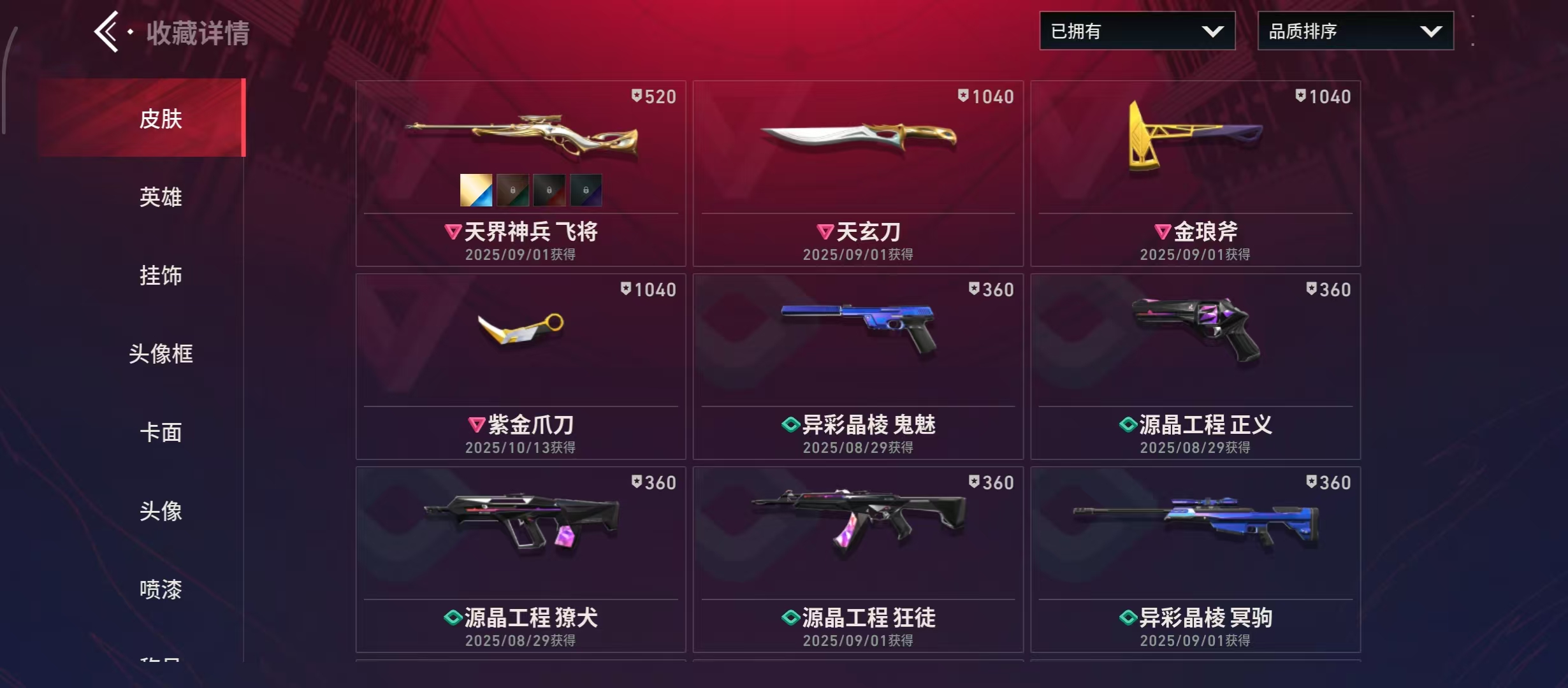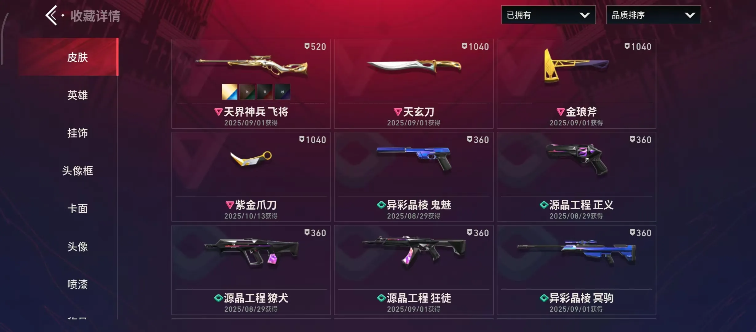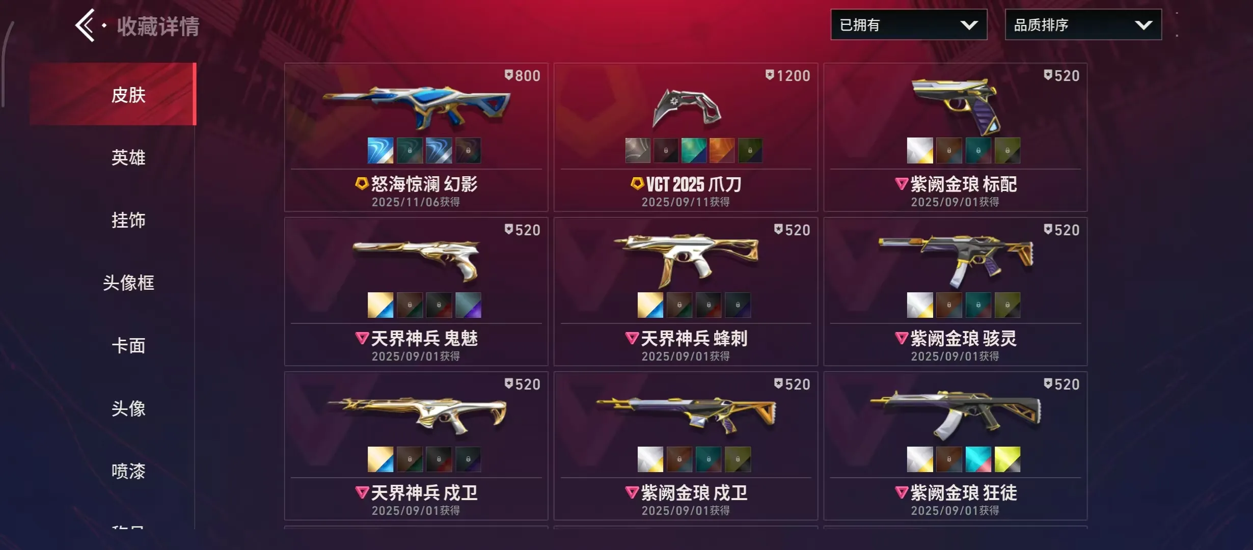 ⑩④🈵天界神兵套装❤紫阙金琅套装🈵蓝怒海惊澜幻影🈵蓝橙VCT爪刀🈵紫天界鬼魅🈵蓝黄紫阙狂徒🈵紫金爪刀