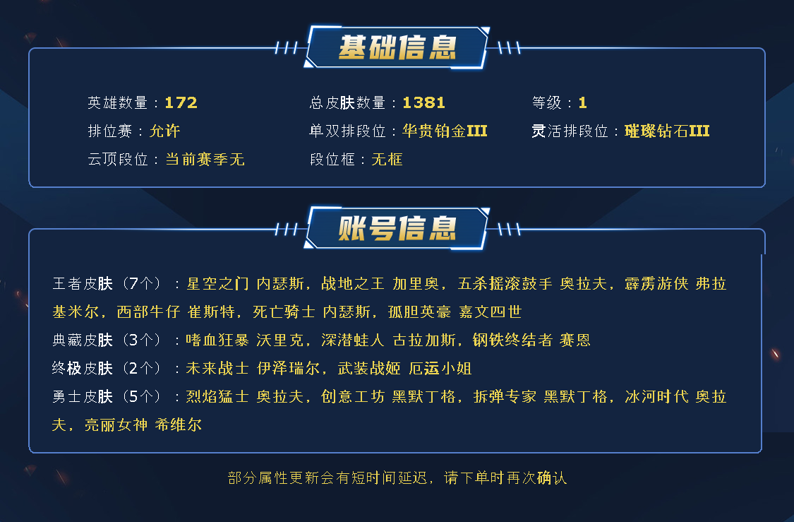 ~~喜欢记得收藏~~可排位~~1282皮全英雄丨911原皮371炫彩~~租之前尽量查一下游戏ID,确保段位是您需要的,避免浪费您的时间~~请勿挂机逃跑故意送人头,谢谢合作,谢谢~~