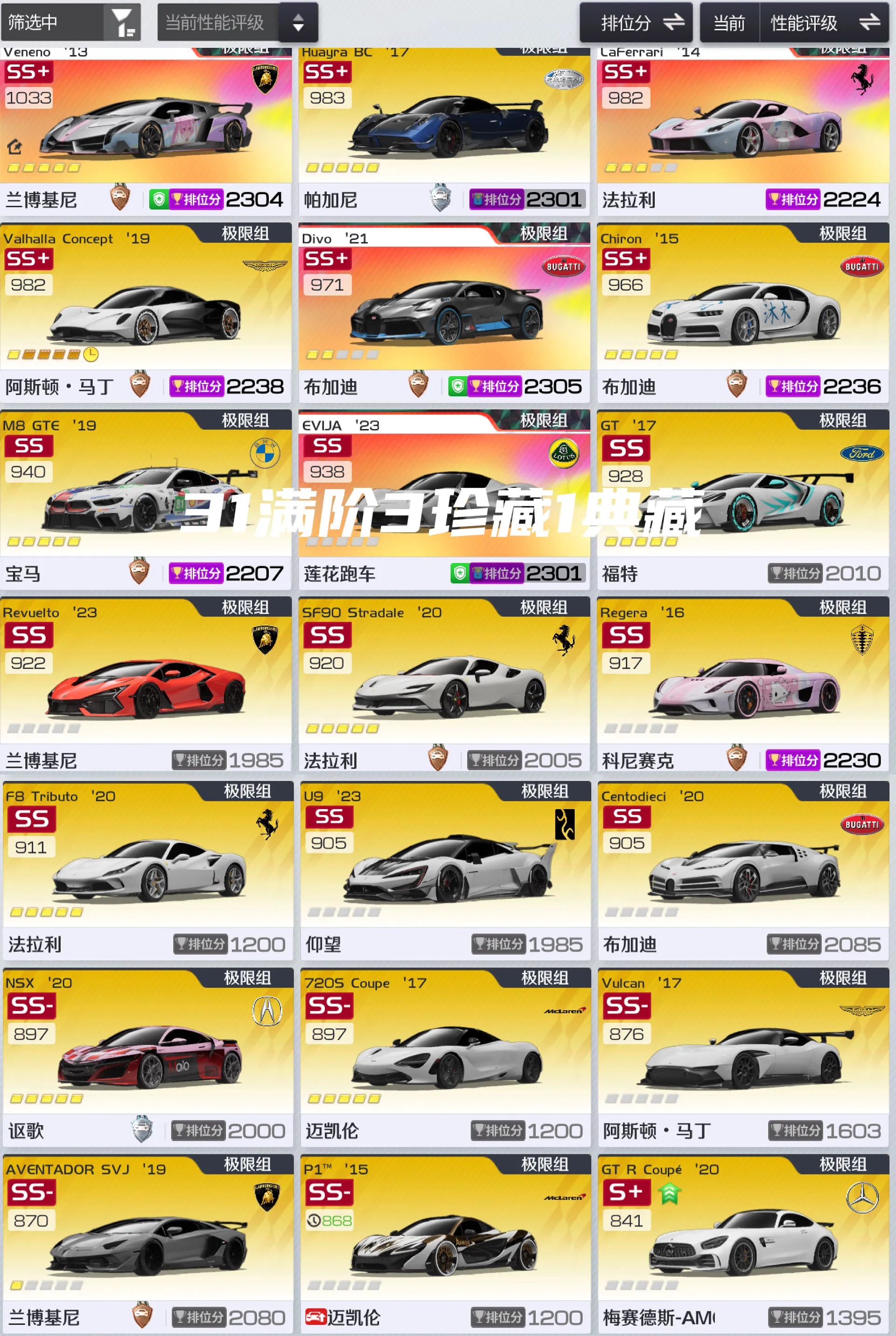 【安卓】 三端互通✨31辆满阶满改顶氪号/已充20W✨3珍藏1典藏满阶✨满阶满改毒药/帕加尼/雷文顿/康塔什等
