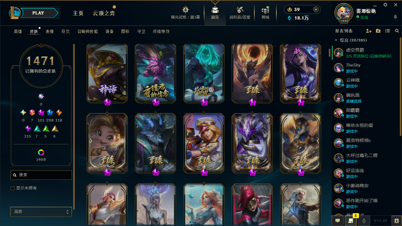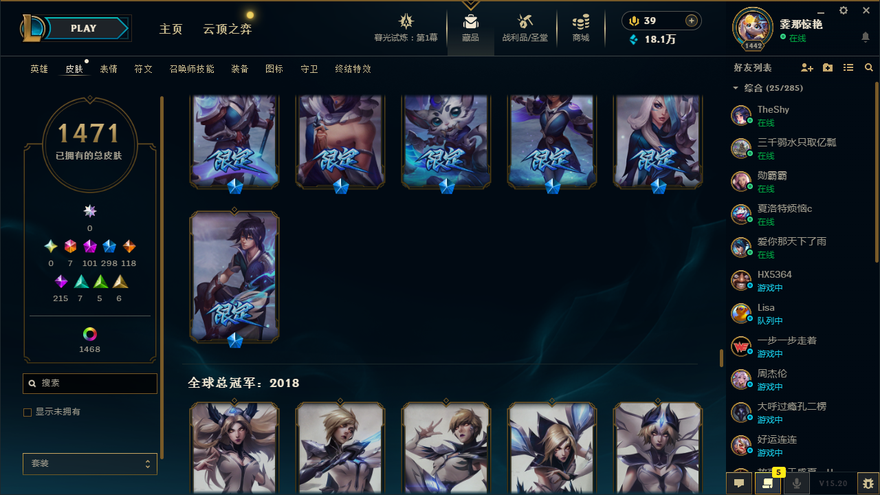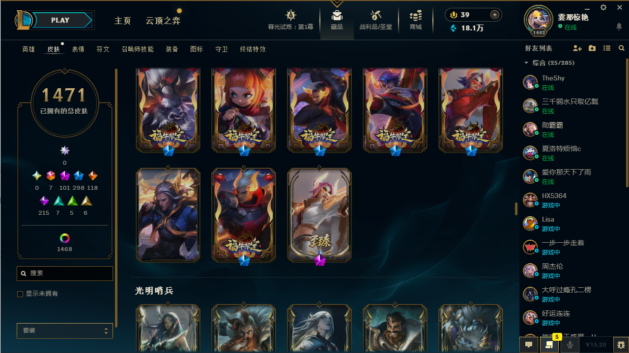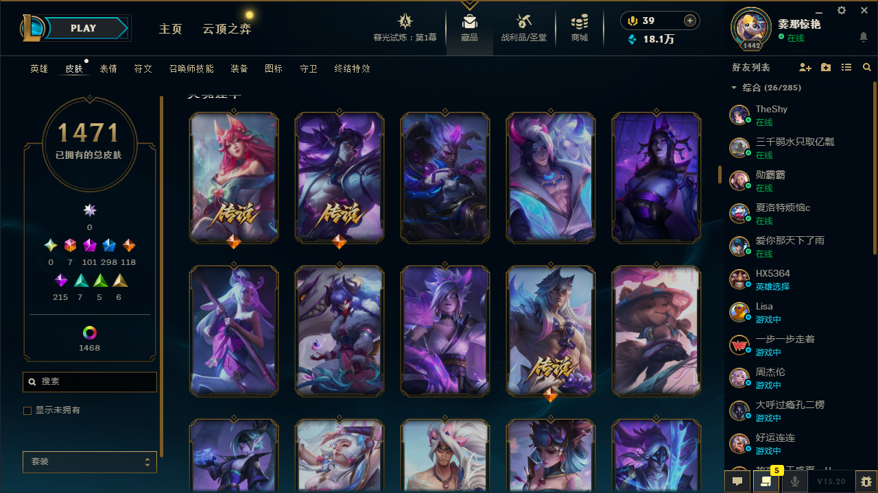 【重要皮肤】战斗学院奇亚娜至臻 黑色玫瑰假面舞会卡特琳娜至臻 暗星女王黛安娜至臻 魔域梦魇泽丽至臻 幻灵狮心蕾欧娜至臻 人工智能悠米至臻 至高天凯尔至臻 西部魔影伊芙琳至臻 青花瓷千珏至臻 天龙之子伊泽瑞尔至臻 神龙尊者比翼之龙洛至臻 玉剑传说琴仙子至臻 斗魂觉醒萨科至臻 墨之影武者亚索至臻 花仙使者卡特琳娜至臻 绝息圣堂厄运小姐至臻 剪纸仙灵希维尔至臻 北极星使者沃里克至臻 海珀利安小队X09星环灵风迦娜至臻 星之守护者辛德拉至臻 海之歌萨勒芬妮至臻 西部魔影猎天使恶魔泰隆至臻 幻灵战斗猫金克丝至臻 青花瓷拉克丝至臻 神凰行者烈羽焰凰霞至臻 女帝黛安娜至臻 战斗学院蕾欧娜至臻 太空律动璐璐至臻 魔女婕拉至臻 魔女乐芙兰至臻 奥术师佐伊至臻 未来战士卢锡安至臻 真实伤害亚索至臻 真实伤害赛娜至臻 星之守护者索拉卡至臻 灵魂莲华提莫至臻 灵能特工伊泽瑞尔至臻 福牛守护者菲奥娜至臻 源计划逆流塞拉斯至臻 源计划阴劫至臻 暗星墨菲特至臻 黑夜使者凯隐至臻 神龙尊者均衡之龙沃利贝尔至臻 飞升战神潘森至臻 KDA二代卡莎至臻 KDA一代卡莎至臻 KDA阿狸至臻 KDA阿狸2022至臻 KDA伊芙琳至臻 KDA阿卡丽至臻 KDA阿卡丽2022至臻 战斗学院拉克丝至臻 烈焰美人薇恩至臻 电玩女神凯特琳至臻 星之守护者妮蔻至臻 源计划正义艾瑞莉娅至臻 真实伤害奇亚娜至臻 真实伤害奇亚娜2022至臻 绒毛菲兹至臻 绒毛菲兹2022至臻 玉剑传说武剑仙至臻 玉剑传说武剑仙2022至臻 腥红之月亚托克斯至臻 腥红之月亚托克斯2022至臻 未来战士锤石至臻 未来战士锤石2022至臻 黑夜使者李青至臻 黑夜使者李青2022至臻 殿堂传奇薇恩 殿堂传奇乐芙兰 水晶巫灵泽拉斯 灰烬骑士莫德凯撒 灰烬骑士派克 海克斯科技安妮 海克斯科技瑟庄妮 海克斯科技雷克顿 海克斯科技斯维因 海克斯科技吉格斯 海克斯科技玛尔扎哈 海克斯科技波比 海克斯科技嘉文四世 海克斯科技阿木木 海克斯科技拉莫斯 海克斯科技魔腾 海克斯科技崔丝塔娜 新卧虎藏龙贾克斯 水晶掠夺者卡兹克 水晶圣骑艾希 永恒之森奥恩 暗星科加斯 光明哨兵奥拉夫 黎明使者卡尔玛 恐惧新星德莱厄斯 零之枪骑赫卡里姆 摄魂使者薇恩 新创战纪希维尔 青年瑞兹 胜利剑圣易 胜利女神娑娜 胜利巨口克格莫 舞会公主安妮 战熊骑士瑟庄妮 创星之灵璐璐 荣誉使者玛尔扎哈 养蜂人辛吉德 勇敢的心德莱厄斯 电玩女神厄运小姐 电玩勇者锐雯 电玩女神阿狸 星之守护者伊泽瑞尔 玉剑传说无影 玉剑传说舞剑仙 神凰行者幽羽玄凰萨勒芬妮 神凰行者烈羽焰凰霞 海珀利安小队Z01猎户座卢锡安 玉剑传说神机花火 玉剑传说无劫 星之守护者佐伊 灵能特工易 黎明使者薇恩 点心宝贝阿木木 龙的传人李青 银龙裁决泰隆 天龙之子斯莫德 猛虎下山赵信 替父从军花木兰 神龙烈焰金克丝 碧玉之牙卡西奥佩娅 古琴余韵娑娜 春晖神女拉克丝 你看见过我的熊猫吗安妮 北辰之威内瑟斯 南天之怒沃里克 美猴王孙悟空 定海神珍孙悟空 玉净夜叉凯特琳 紫金罗刹莫甘娜 广寒仙子嫦娥 虎痴之拳蔚 张辽文远 司马懿仲达 金猪烈焰瑟庄妮 烈焰美人薇恩 纳财大帝塔姆 神龙之翼库奇 征服者贾克斯 王国机神青龙德莱文 王国机神朱雀蕾欧娜 王国机神苍狼瑟提 王国机神白虎贾克斯 王国机神玄武盖伦 福牛守护者安妮 福牛守护者厄斐琉斯 福牛守护者德莱厄斯 福牛守护者阿利斯塔 福牛守护者嘉文四世 福牛守护者菲奥娜 胜利机器人布里茨 胜利女神奥莉安娜 胜利枪神卢锡安 胜利之剑亚托克斯 怦然心动凯特琳 意乱情迷蔚 黯然心伤阿木木 水晶玫瑰阿克尚 水晶玫瑰迦娜 幽梦玫瑰伊莉丝 碎心之拳蔚 甜心之羽霞 甜心之翎洛 甜心宝贝安妮 甜心宝贝娑娜 穿心之剑菲奥娜 觅心游侠卢锡安 觅心魔灵奥莉安娜 觅心女王艾希 觅心之翼奎因 觅心萝莉金克丝 觅心猫猫悠米 觅心猎手薇恩 幽梦玫瑰辛德拉 幽梦玫瑰泰隆 水晶玫瑰婕拉 水晶玫瑰斯维因 双城之战2微光实验室辛吉德 北极星神赛娜 北极星守望者佐伊 北极星圣贤基兰 北极星使者沃里克 冬境仙灵索拉卡 寒冬精灵璐璐 冬季仙境奥莉安娜 雪球也能爆炸吉格斯 圣诞捣蛋鬼金克丝 圣诞老人布隆 圣诞老人德莱文 冰雪驯鹿波比 冰雪风暴希维尔 冬季仙境卡尔玛 持胡萝卜的雪人易 狂心冰王图奇 冰封王子蒙多 冰雪女神辛德拉 魄罗骑士瑟庄妮 夺命美人卡特琳娜 平安夜女神娑娜 圣诞糖果棒厄运小姐 魅惑女巫卡西奥佩娅 魅惑女巫乐芙兰 魅惑女巫迦娜 魅惑女巫厄运小姐 魅惑女巫莫甘娜 魅惑女巫崔丝塔娜 魅惑女巫奈德丽 魅惑女巫伊莉丝 伯爵卡萨丁 大魔法锅布里茨 大魔王提莫 死亡誓约卡特琳娜 死亡誓约劫 死亡誓约维克托 灵魂收割者索拉卡 克烈古拉伯爵 小恶魔菲兹 南瓜头王子阿木木 海之歌艾希 海之歌奈德丽 海之歌萨勒芬妮 海之歌泽丽 泳池派对凯特琳 泳池派对佐伊 泳池派对普朗克 泳池派对辛德拉 泳池派对奥莉安娜 泳池派对嘉文四世 泳池派对黑默丁格 泳池派对塔莉垭 泳池派对厄运小姐 泳池派对塔里克 泳池派对菲奥娜 泳池派对格雷福斯 泳池派对李青 泳池派对蕾欧娜 泳池派对雷克顿 泳池派对瑟提 泳池派对布隆 电玩战魂赫卡里姆 斩星魔剑易 御星魔矢艾希 送披萨的小姐姐希维尔 鸡里奥 克格汪 制胜金靴李青 制胜金球拉莫斯 DRX亚托克斯 