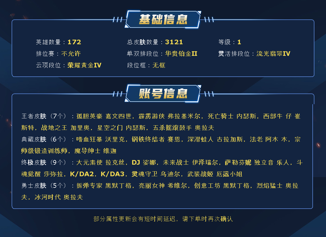 ~~喜欢记得收藏~~可排位~~2986皮全英雄丨1471原皮1515炫彩~~租之前尽量查一下游戏ID,确保段位是您需要的,避免浪费您的时间~~请勿挂机逃跑故意送人头,谢谢合作,谢谢~~