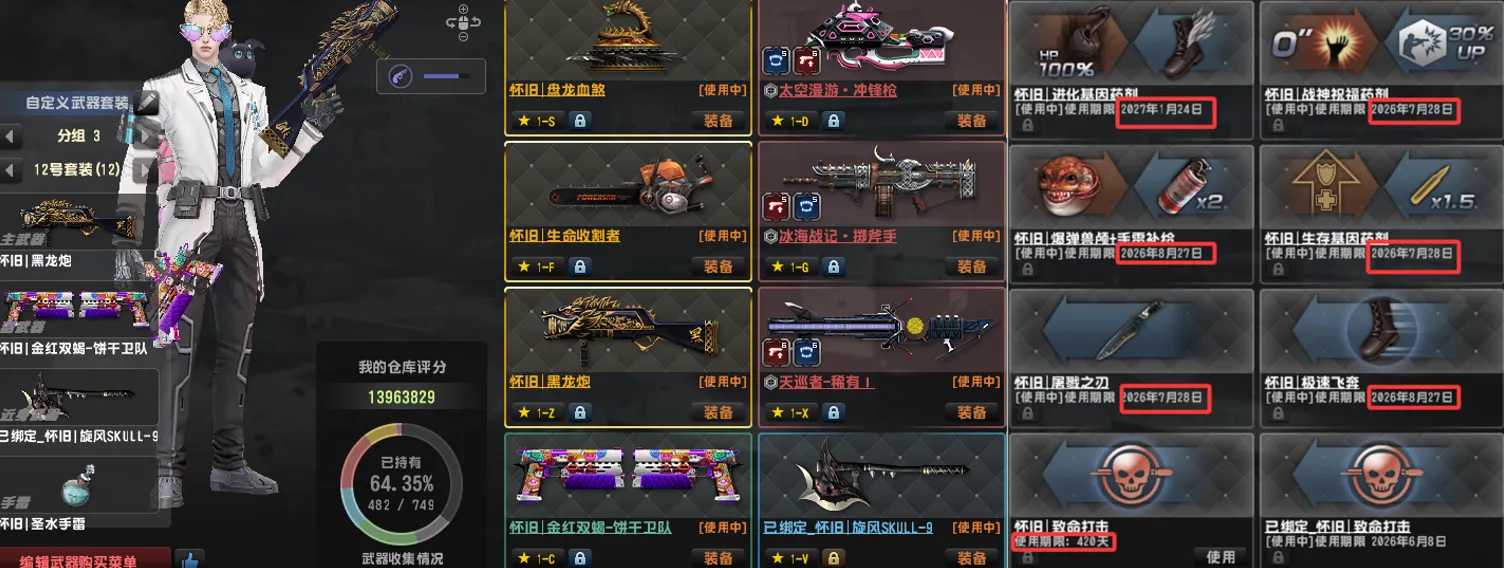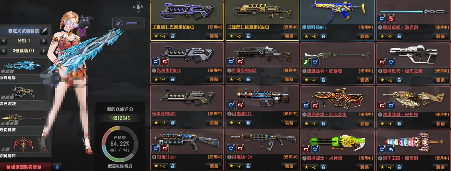 3.更新:光束4件套,维京全套,闪电全套!第1,13到22赛季(第22赛季满级未开),主要配件武器6阶,其他最少5阶,强化武器全满!
