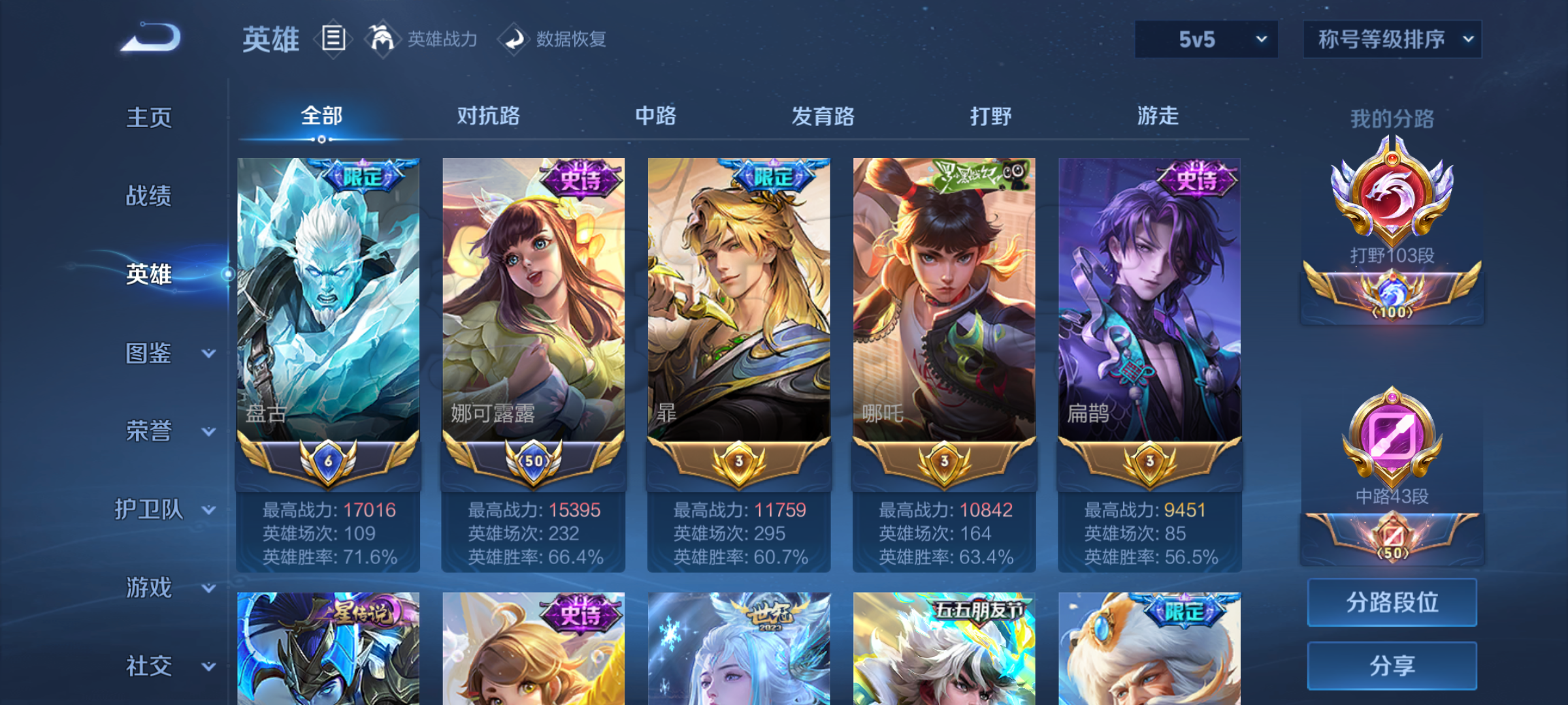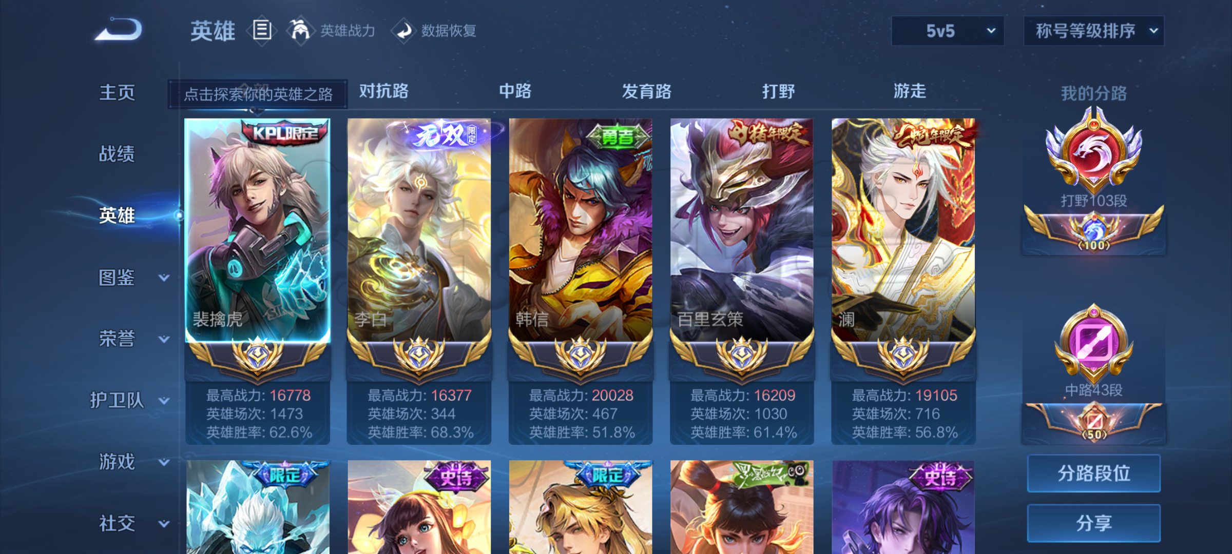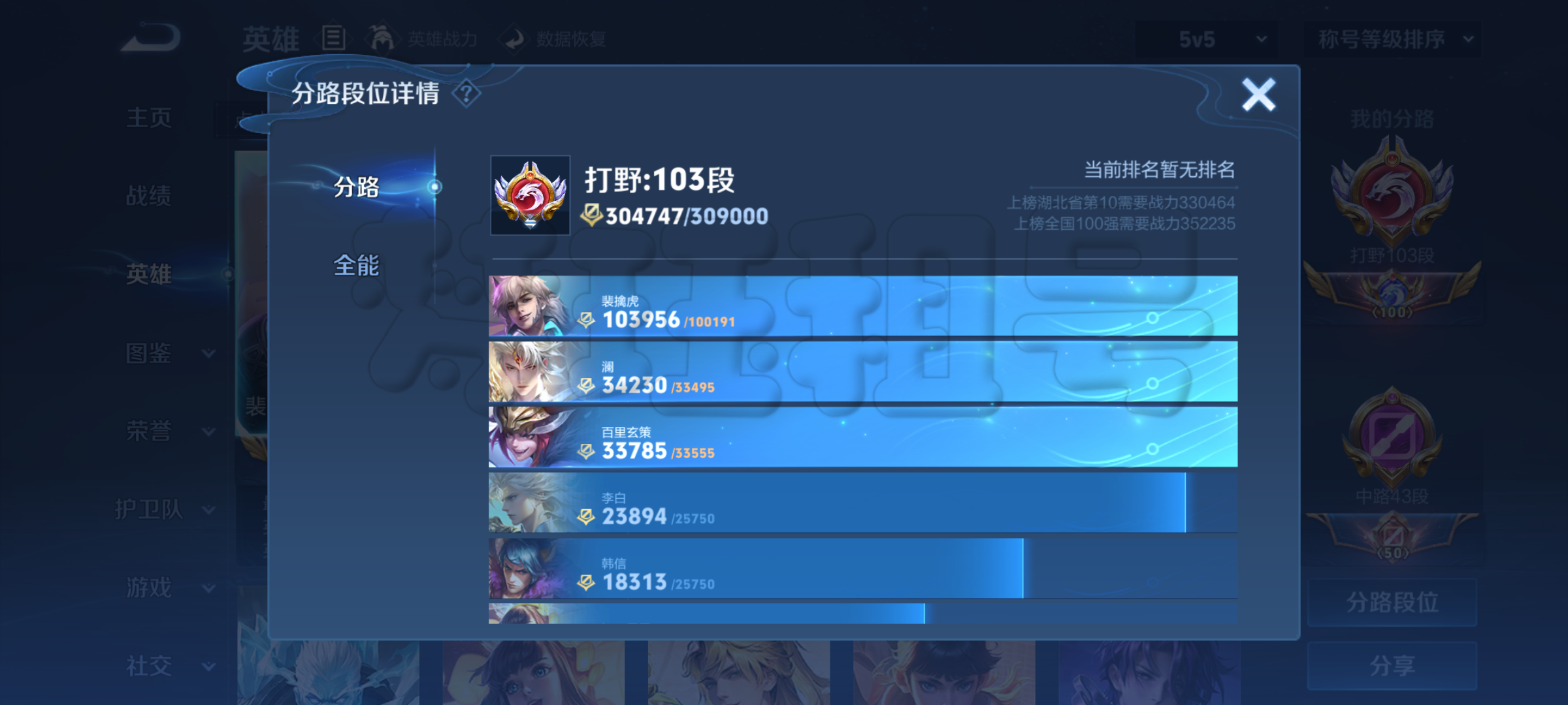 【安卓】 禁巅峰✨无双V10✨103段打野/新历史小国打野标✨历史国服2W分韩信✨国服澜/李白/老虎/玄策等