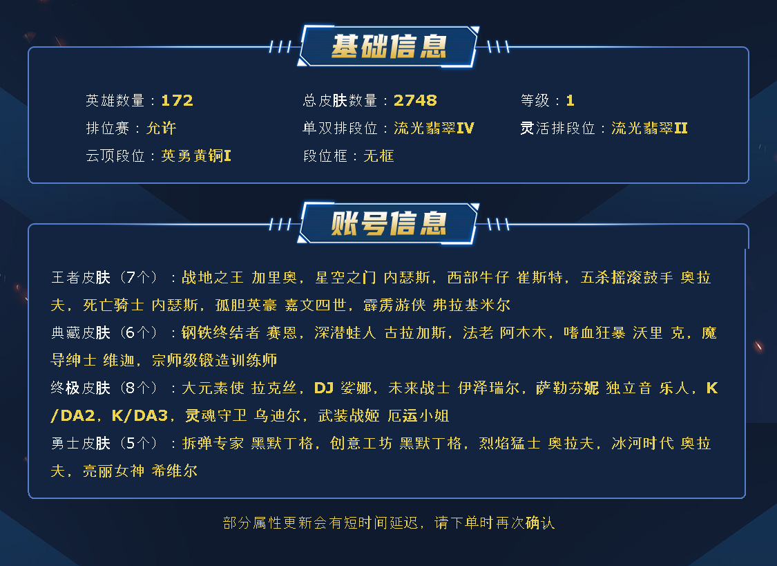 【重要皮肤】机神玄武盖伦至臻 灵魂莲华劫至臻 天龙之子伊泽瑞尔至臻 北极星钢影卡蜜尔至臻 心之钢永恩至臻 魔女阿卡丽至臻 魂蔷薇烈娜塔至臻 玉剑传说琴仙子至臻 斗魂觉醒萨科至臻 墨之影武者亚索至臻 花仙使者卡特琳娜至臻 绝息圣堂厄运小姐至臻 青花瓷丽桑卓至臻 北极星使者沃里克至臻 太空律动魔音海妖娜美至臻 至高天奎桑提至臻 灵魂莲华易至臻 海珀利安小队X09星环灵风迦娜至臻 星之守护者辛德拉至臻 星之守护者艾克至臻 海之歌萨勒芬妮至臻 西部魔影猎天使恶魔泰隆至臻 月蚀骑士赛娜至臻 幻灵战斗猫金克丝至臻 青花瓷拉克丝至臻 神凰行者烈羽焰凰霞至臻 魅惑女巫莫甘娜至臻 女帝黛安娜至臻 战斗学院蕾欧娜至臻 太空律动璐璐至臻 魔女婕拉至臻 魔女乐芙兰至臻 奥术师佐伊至臻 未来战士卢锡安至臻 真实伤害亚索至臻 真实伤害赛娜至臻 星之守护者索拉卡至臻 灵魂莲华提莫至臻 灵能特工伊泽瑞尔至臻 福牛守护者菲奥娜至臻 源计划逆流塞拉斯至臻 源计划阴劫至臻 暗星墨菲特至臻 神龙尊者炎龙瑟提至臻 黑夜使者凯隐至臻 神龙尊者均衡之龙沃利贝尔至臻 征服者贾克斯至臻 飞升战神潘森至臻 焰执事布兰德至臻 KDA二代卡莎至臻 KDA一代卡莎至臻 KDA卡莎2022至臻 KDA阿狸至臻 KDA阿狸2022至臻 KDA伊芙琳至臻 KDA伊芙琳2022至臻 KDA阿卡丽至臻 KDA阿卡丽2022至臻 战斗学院拉克丝至臻 战斗学院拉克丝2022至臻 烈焰美人薇恩至臻 烈焰美人薇恩2022至臻 电玩女神凯特琳至臻 电玩女神凯特琳2022至臻 魅惑女巫厄运小姐至臻 魅惑女巫厄运小姐2022至臻 星之守护者妮蔻至臻 星之守护者妮蔻2022至臻 源计划正义艾瑞莉娅至臻 源计划正义艾瑞莉娅2022至臻 真实伤害奇亚娜至臻 真实伤害奇亚娜2022至臻 绒毛菲兹至臻 绒毛菲兹2022至臻 玉剑传说武剑仙至臻 腥红之月亚托克斯至臻 腥红之月亚托克斯2022至臻 未来战士锤石至臻 未来战士锤石2022至臻 黑夜使者李青至臻 黑夜使者李青2022至臻 灰烬骑士派克 灰烬杀手塞拉斯 海克斯科技安妮 海克斯科技瑟庄妮 海克斯科技克格莫 海克斯科技斯维因 海克斯科技吉格斯 海克斯科技玛尔扎哈 海克斯科技波比 海克斯科技嘉文四世 海克斯科技阿利斯塔 海克斯科技阿木木 海克斯科技魔腾 海克斯科技崔丝塔娜 新卧虎藏龙贾克斯 水晶掠夺者卡兹克 星之守护者塔莉垭 永恒之森奥恩 暗星科加斯 黎明使者卡尔玛 零之枪骑赫卡里姆 摄魂使者薇恩 新创战纪希维尔 青年瑞兹 胜利女神娑娜 哥特萝莉安妮 舞会公主安妮 战熊骑士瑟庄妮 创星之灵璐璐 养蜂人辛吉德 安妮梦游仙境 勇敢的心德莱厄斯 电玩女神厄运小姐 电玩勇者锐雯 电玩女神阿狸 星之守护者伊泽瑞尔 玉剑传说舞剑仙 神凰行者幽羽玄凰萨勒芬妮 玉剑传说舞龙卫 玉剑传说翼剑仙 星之守护者佐伊 灵能特工易 点心宝贝阿木木 龙的传人李青 天龙之子斯莫德 虎头虎脑崔丝塔娜 招财进宝提莫 替父从军花木兰 神龙烈焰金克丝 碧玉之牙卡西奥佩娅 古琴余韵娑娜 春晖神女拉克丝 你看见过我的熊猫吗安妮 北辰之威内瑟斯 南天之怒沃里克 美猴王孙悟空 定海神珍孙悟空 玉净夜叉凯特琳 紫金罗刹莫甘娜 广寒仙子嫦娥 虎痴之拳蔚 张辽文远 金猪烈焰瑟庄妮 烈焰美人薇恩 纳财大帝塔姆 醒狮克格莫 神龙之翼库奇 胜利女神瑟庄妮 胜利之树茂凯 胜利机器人布里茨 胜利女神奥莉安娜 胜利枪神格雷福斯 胜利枪神卢锡安 胜利之剑亚托克斯 水晶玫瑰迦娜 幽梦玫瑰伊莉丝 碎心之拳蔚 甜心之羽霞 甜心之翎洛 甜心宝贝安妮 甜心宝贝娑娜 穿心之剑菲奥娜 觅心游侠卢锡安 觅心魔灵奥莉安娜 觅心女王艾希 觅心之翼奎因 觅心萝莉金克丝 觅心猫猫悠米 觅心猎手薇恩 幽梦玫瑰辛德拉 幽梦玫瑰泰隆 水晶玫瑰婕拉 水晶玫瑰斯维因 冬境仙灵索拉卡 寒冬精灵璐璐 冬季仙境奥莉安娜 雪球也能爆炸吉格斯 圣诞捣蛋鬼金克丝 圣诞老人布隆 圣诞老人德莱文 冰雪驯鹿波比 冰雪风暴希维尔 冬季仙境卡尔玛 持胡萝卜的雪人易 狂心冰王图奇 冰封王子蒙多 冰雪女神辛德拉 魄罗骑士瑟庄妮 夺命美人卡特琳娜 平安夜女神娑娜 圣诞糖果棒厄运小姐 魅惑女巫赛娜 魅惑女巫迦娜 魅惑女巫厄运小姐 魅惑女巫莫甘娜 魅惑女巫崔丝塔娜 魅惑女巫奈德丽 魅惑女巫伊莉丝 伯爵卡萨丁 大魔法锅布里茨 大魔王提莫 死亡誓约卡特琳娜 死亡誓约劫 死亡誓约维克托 灵魂收割者索拉卡 克烈古拉伯爵 小恶魔菲兹 南瓜头王子阿木木 海之歌艾希 海之歌奈德丽 海之歌泽丽 泳池派对凯特琳 泳池派对佐伊 泳池派对普朗克 泳池派对辛德拉 泳池派对奥莉安娜 泳池派对嘉文四世 泳池派对黑默丁格 泳池派对塔莉垭 泳池派对厄运小姐 泳池派对塔里克 泳池派对菲奥娜 泳池派对格雷福斯 泳池派对李青 泳池派对蕾欧娜 泳池派对雷克顿 泳池派对布隆 电玩战魂赫卡里姆 斩星魔剑易 穿星魔锋赵信 御星魔矢艾希 克格汪 制胜金靴李青 制胜金球拉莫斯 DRX千珏 FPX锤石 FPX薇恩 FPX李青 FPX普朗克 FPX墨菲特 iG卡蜜尔 iG洛 iG卡莎 iG艾瑞莉娅 iG乐芙兰 iG菲奥娜 SSG霞 SSG洛 SSG纳尔 SSG塔莉垭 SSG嘉文四世 SSG伊泽瑞尔 SKTT1扎克 SKTT1烬 SKTT1辛德拉 SKTT1娜美 SKTT1艾克 SKTT1奥拉夫 SKTT1阿利斯塔 SKTT1卡莉丝塔 SKTT1瑞兹 SKTT1阿兹尔 SKTT1伊莉丝 SKTT1雷克顿 SSW锤石 SSW雷恩加尔 SSW泰隆 SSW图奇 SSW辛吉德 SKTT1贾克斯 SKTT1