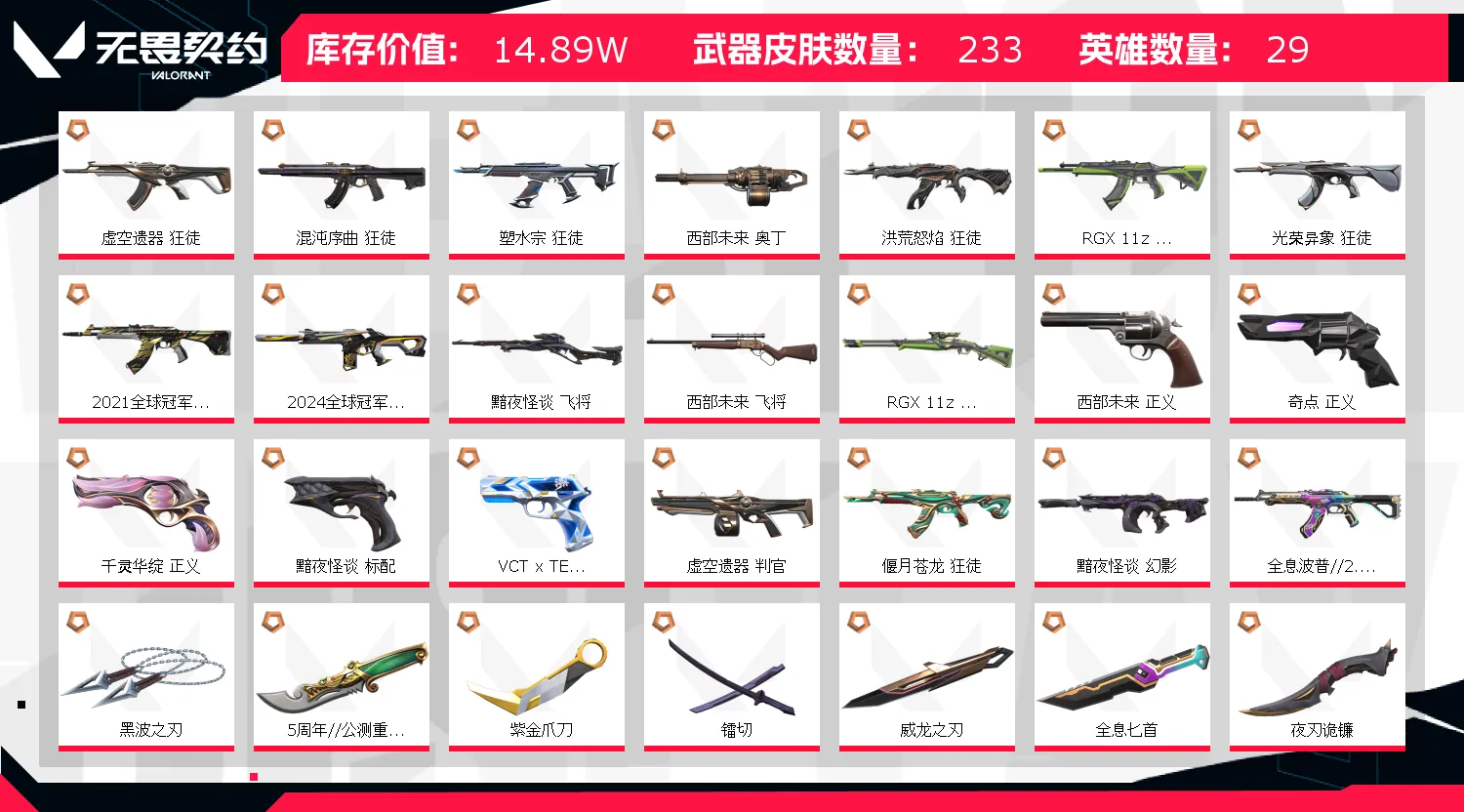 【当前段位:铂金I】30刀27狂徒✨21冠军狂徒✨显卡爪鬼丸落樱黑波诡镰奇点✨混沌盖亚猫猫狂徒✨24冠军莲花幻影✨西部套